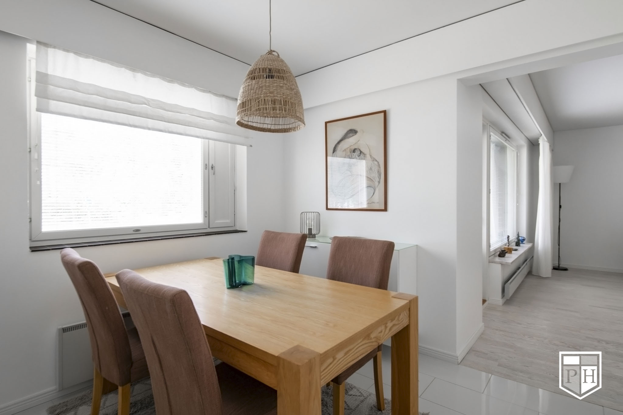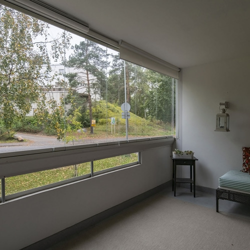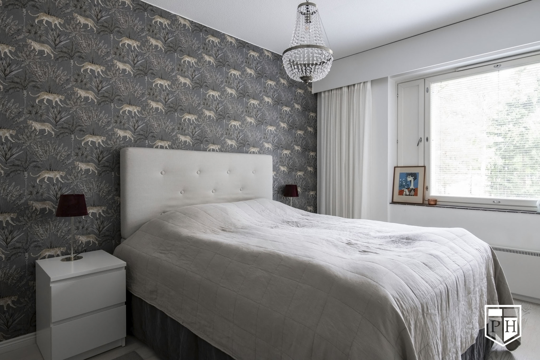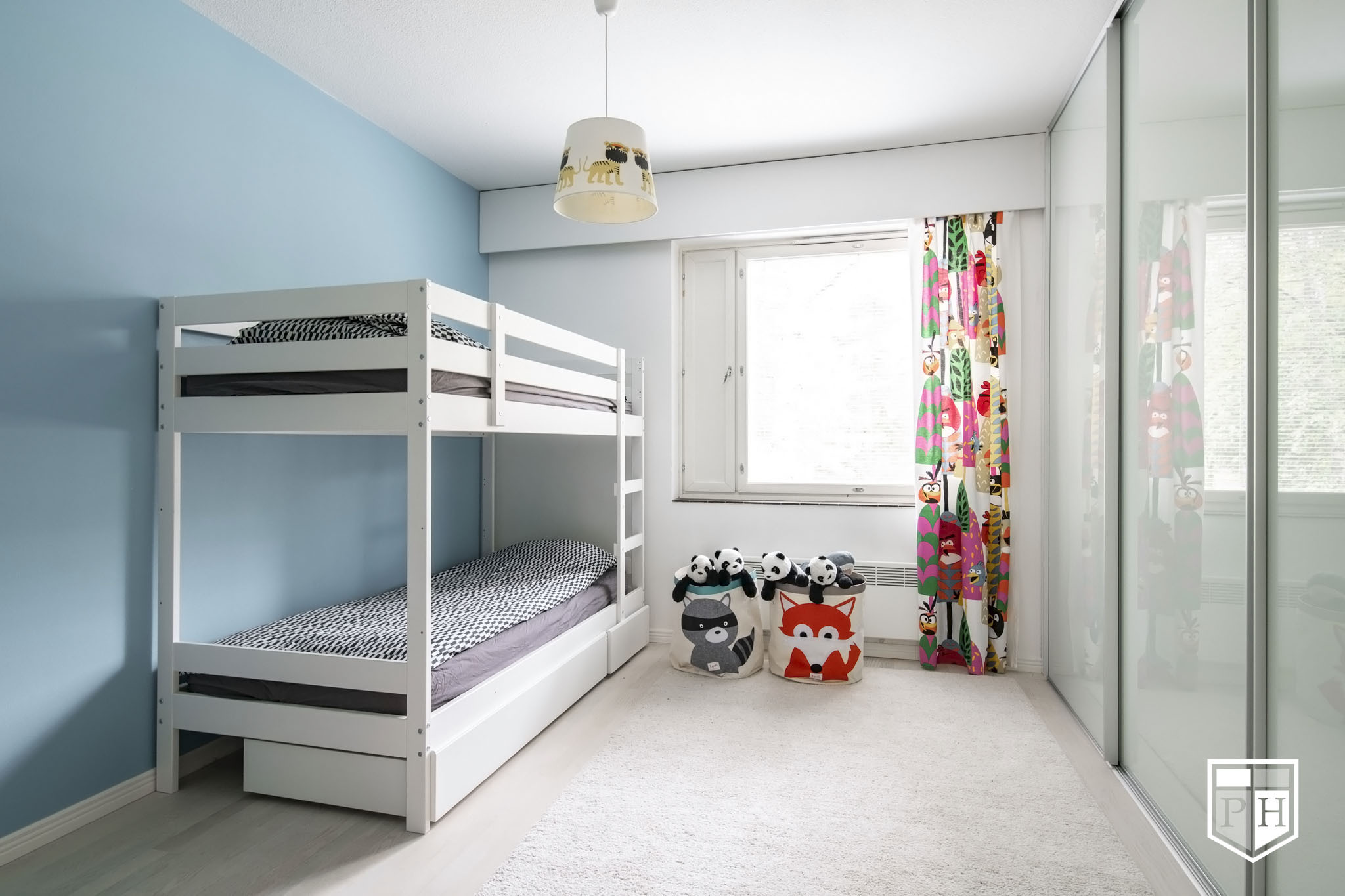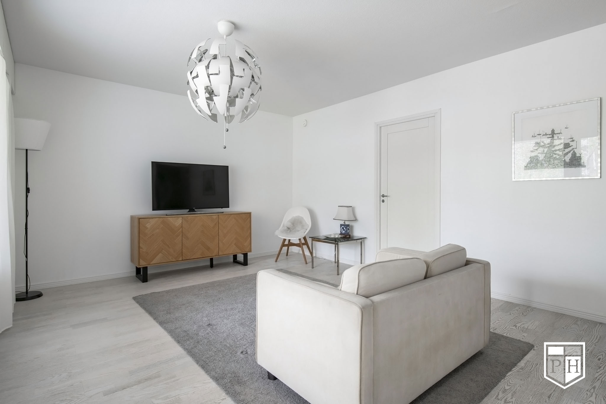 Avara ja valoisa ensimmäisen kerroksen muuttovalmis kolmio. Valoa tulvii isoista etelänpuolisen ikkunoista niin olohuoneeseen, keittiöön kuin ruokailutilaankin. Olohuoneessa on takkavaraus ja käynti isolle parvekkeelle. Valkoinen keittiö on moderni ja tehokas, paljon lasku- ja kaappitilaa. Pohjoisen puolella on kaksi mukavan kokoista makuuhuonetta. Pohjaratkaisu on toimiva, jo eteistilaan astuessa tuntee tulevansa avaraan huoneistoon. Putkiremontin yhteydessä uudistetut saniteettitilat, kodinhoitohuone ja tilava vaatehuone käytännöllisesti heti eteistilan vierellä. Huoneiston materiaalit ja tyyli on kauttaaltaan vaaleaa, ajatonta ja tyylikästä.