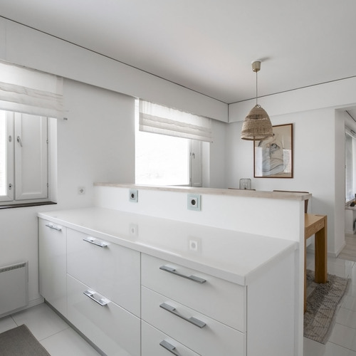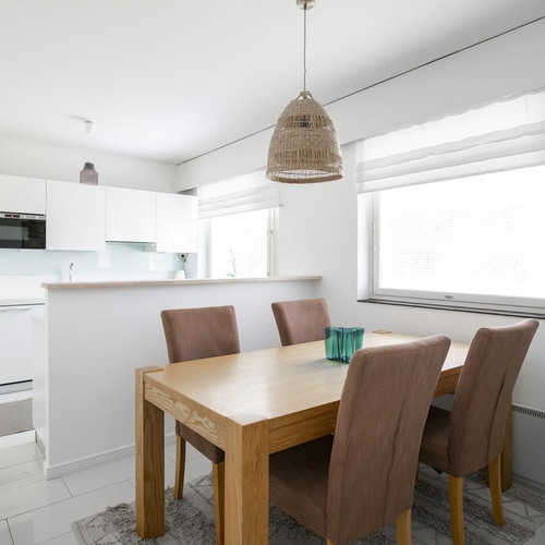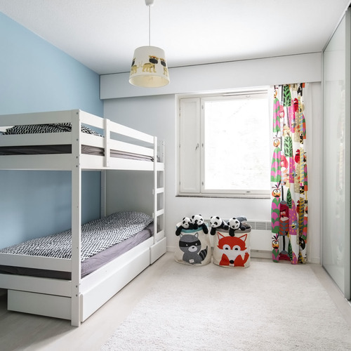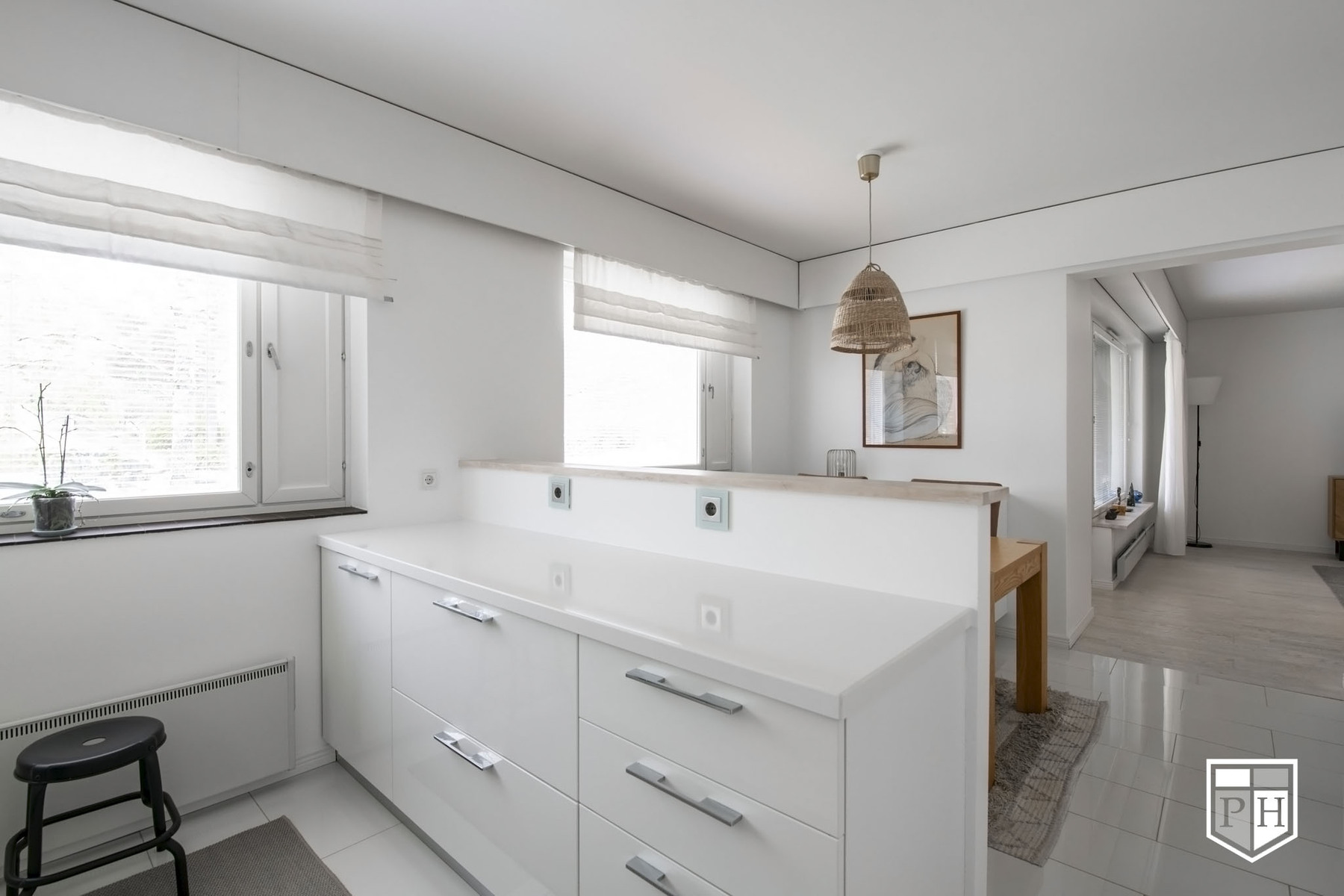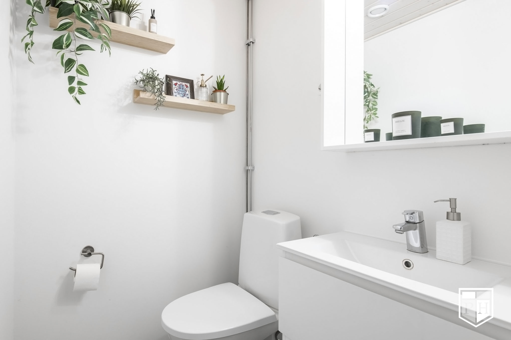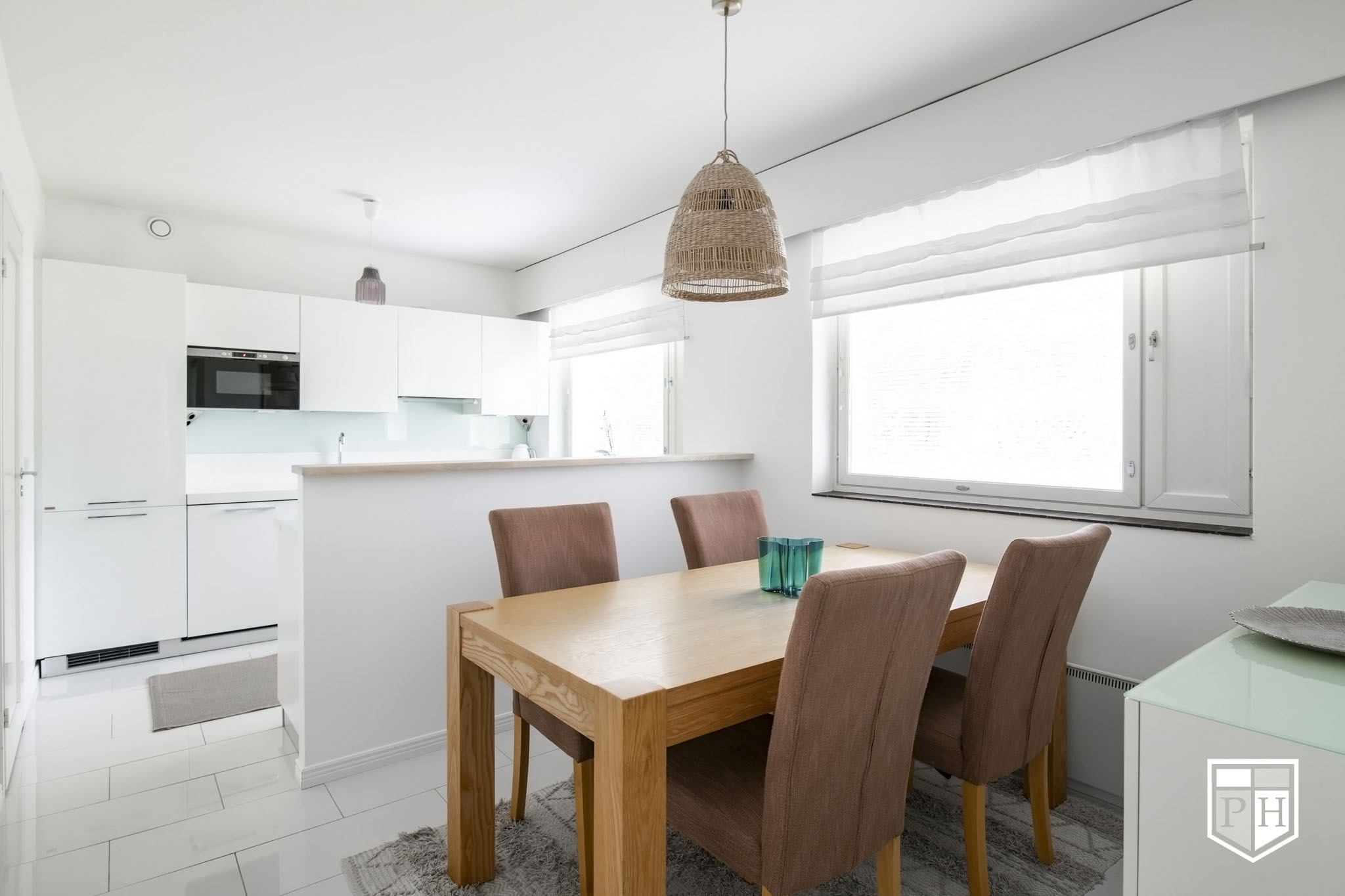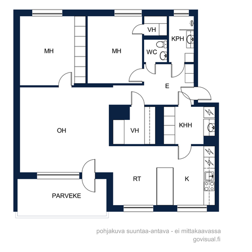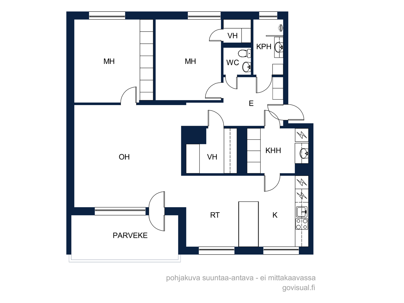 Avara ja valoisa ensimmäisen kerroksen muuttovalmis kolmio. Valoa tulvii isoista etelänpuolisen ikkunoista niin olohuoneeseen, keittiöön kuin ruokailutilaankin. Olohuoneessa on takkavaraus ja käynti isolle parvekkeelle. Valkoinen keittiö on moderni ja tehokas, paljon lasku- ja kaappitilaa. Pohjoisen puolella on kaksi mukavan kokoista makuuhuonetta. Pohjaratkaisu on toimiva, jo eteistilaan astuessa tuntee tulevansa avaraan huoneistoon. Putkiremontin yhteydessä uudistetut saniteettitilat, kodinhoitohuone ja tilava vaatehuone käytännöllisesti heti eteistilan vierellä. Huoneiston materiaalit ja tyyli on kauttaaltaan vaaleaa, ajatonta ja tyylikästä.