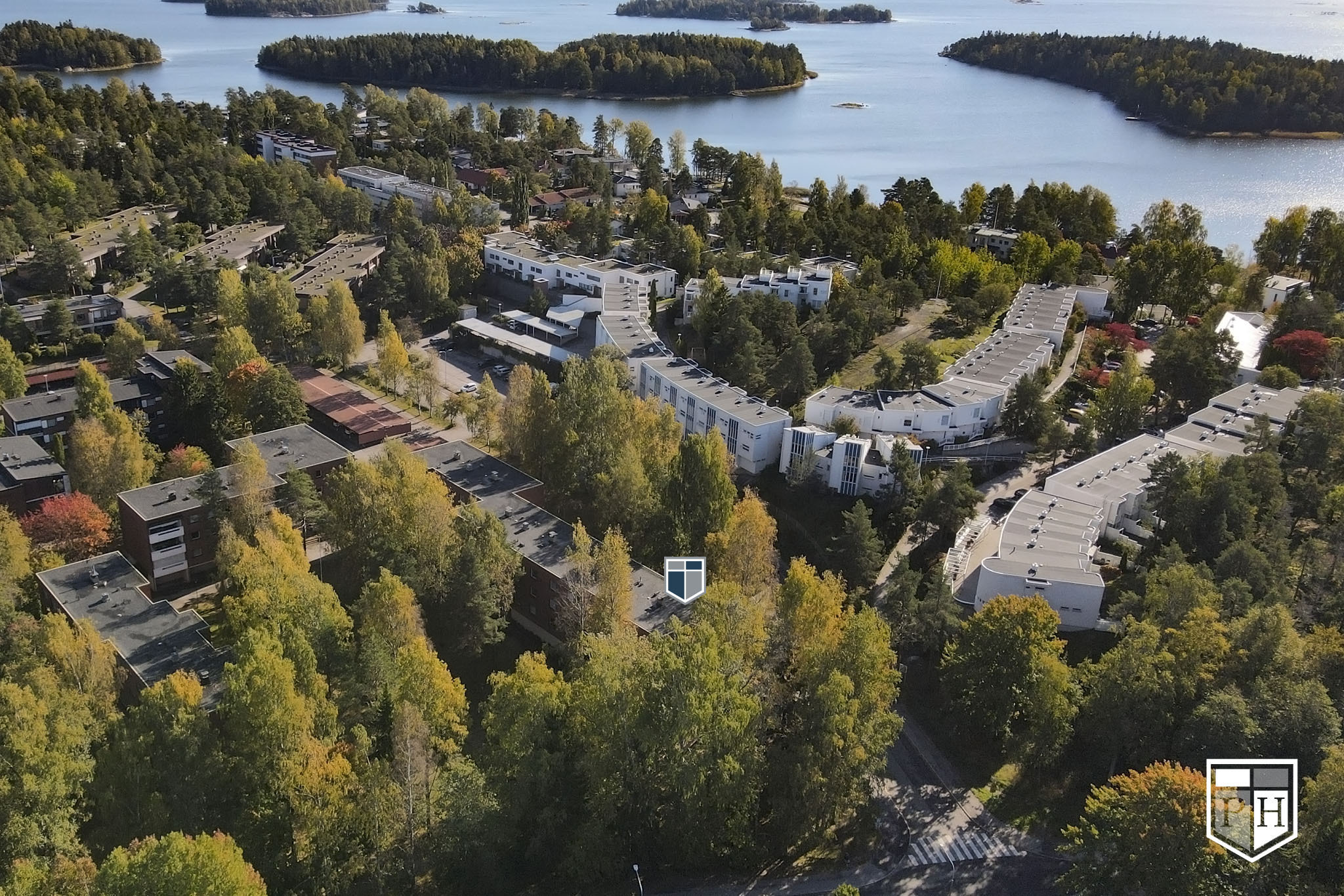 Sijainti on erinomainen Westendin keskiössä. Uusi ostoskeskus on parin sadan metrin päässä, jossa on mm. Alepa. Koulut, päiväkodit, bussipysäkit, rantaraitti ja uimaranta ovat myöskin kaikki kävelyetäisyydellä. Autolla Helsingin keskustaan reilu 10 min.