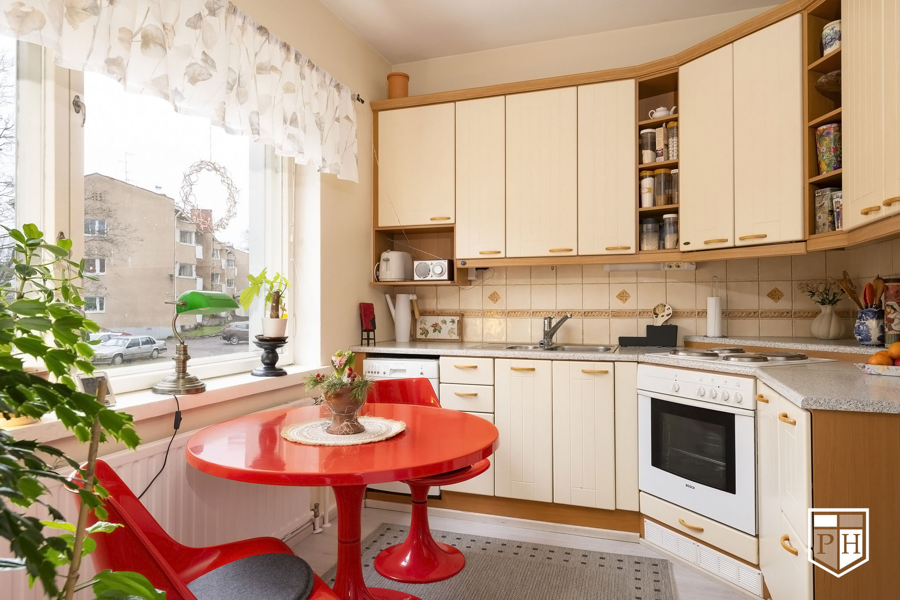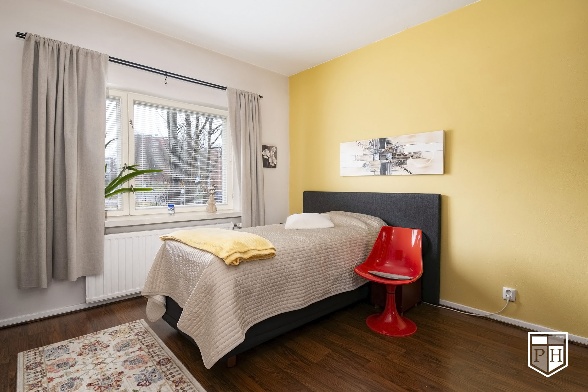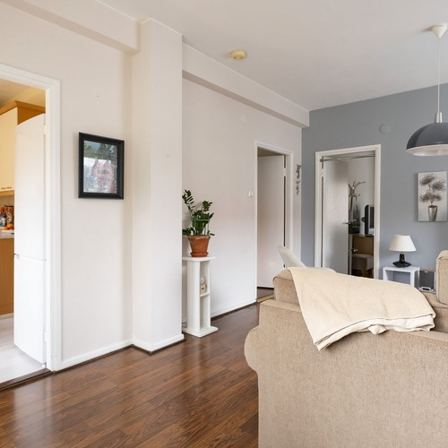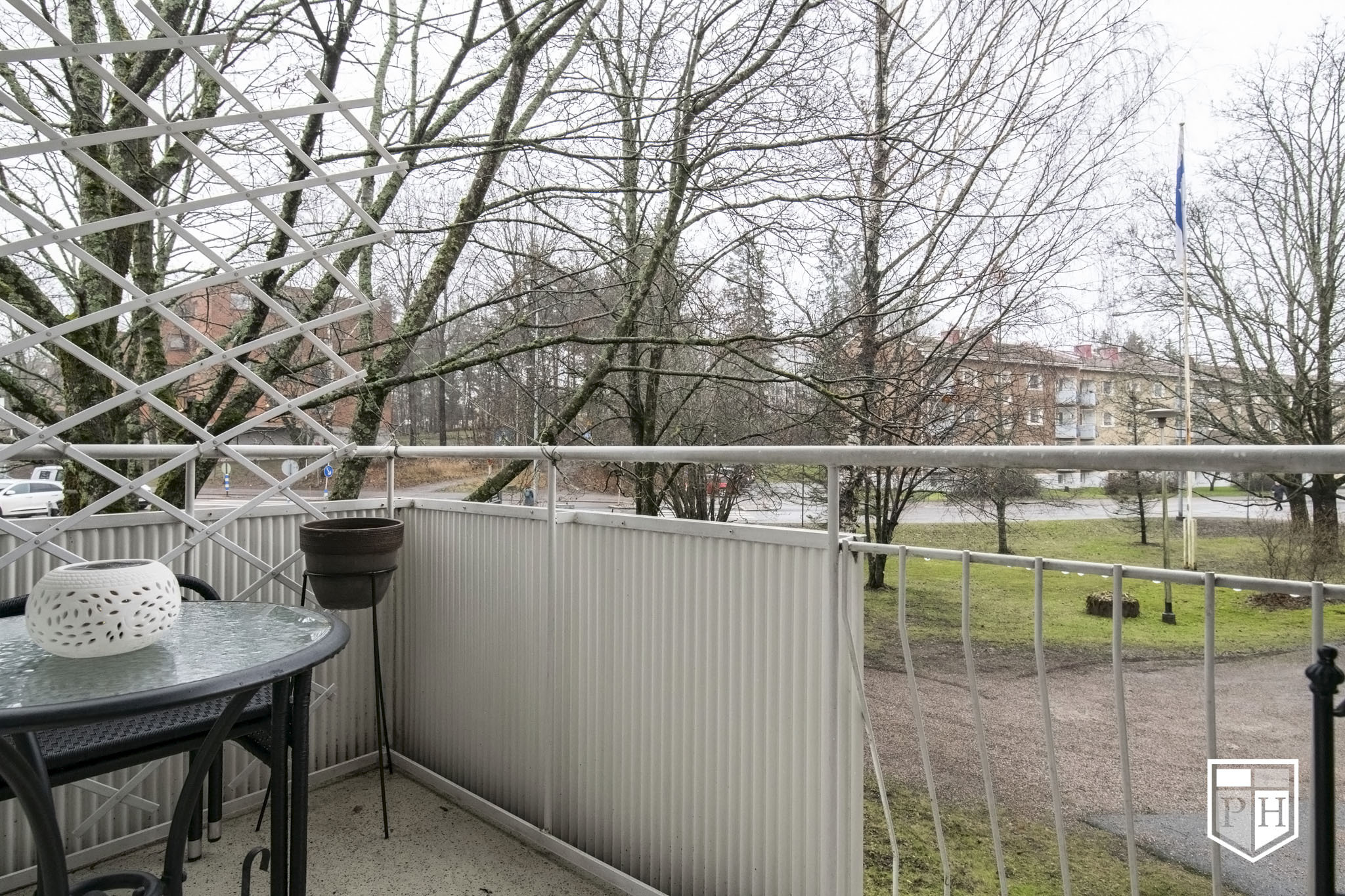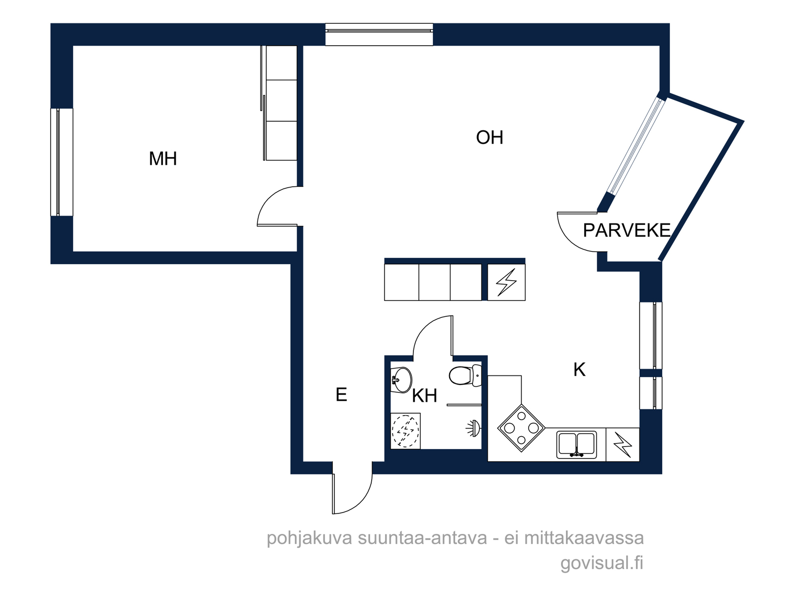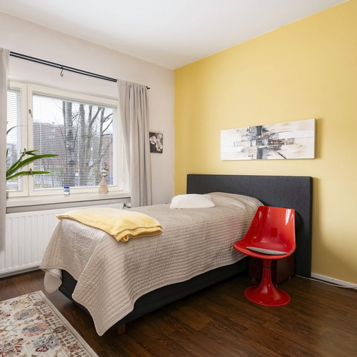 Ensimmäisen kerroksen läpitalon päätyhuoneisto, ikkunoita kolmeen ilmansuuntaan. Olohuoneesta on käynti parvekkeelle, joka on kaakon ja etelän suuntaan. Kylpyhuone on uusittu vuonna 2007 linjasaneerauksen yhteydessä.