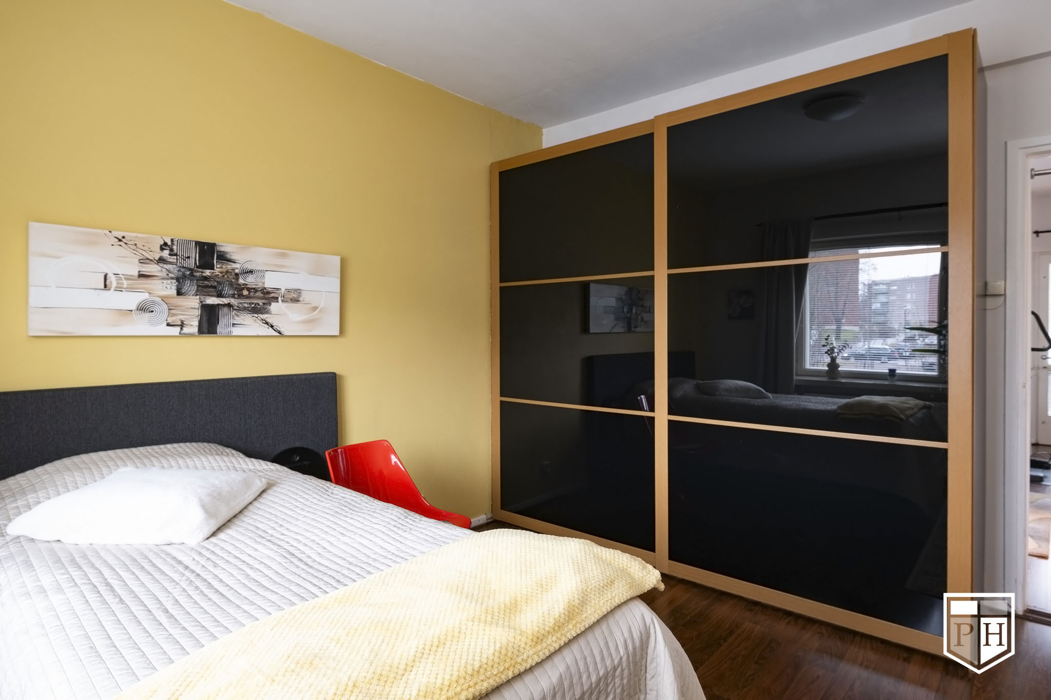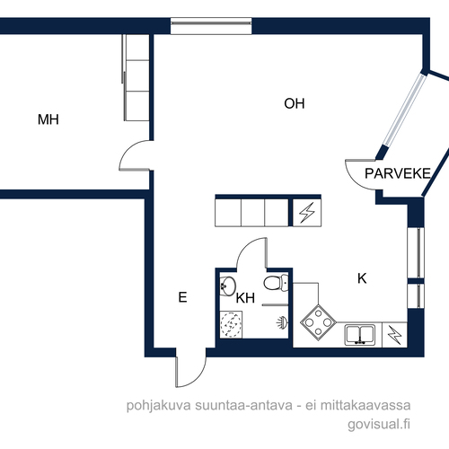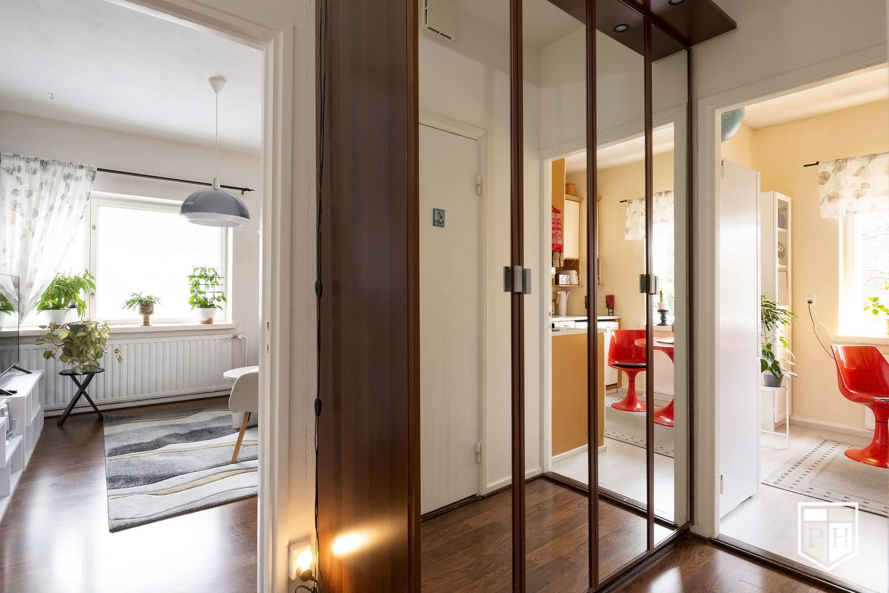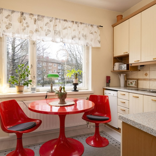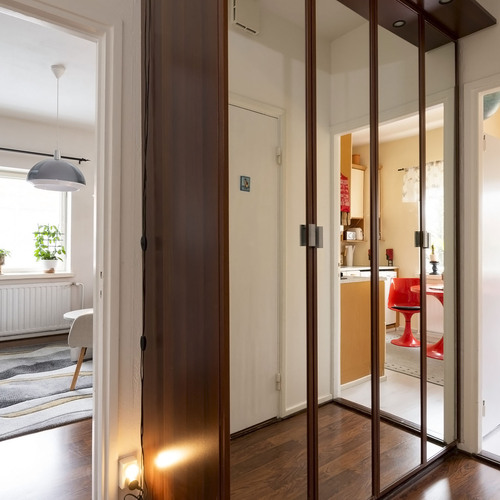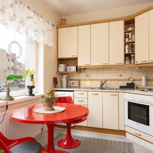 Mukavasti säilytystilaa; eteisessä peiliovellinen kaapisto, makuuhuoneessa liukuovikaapisto, lisäksi asunnolle kuuluu kaksi kellarikomeroa.