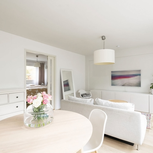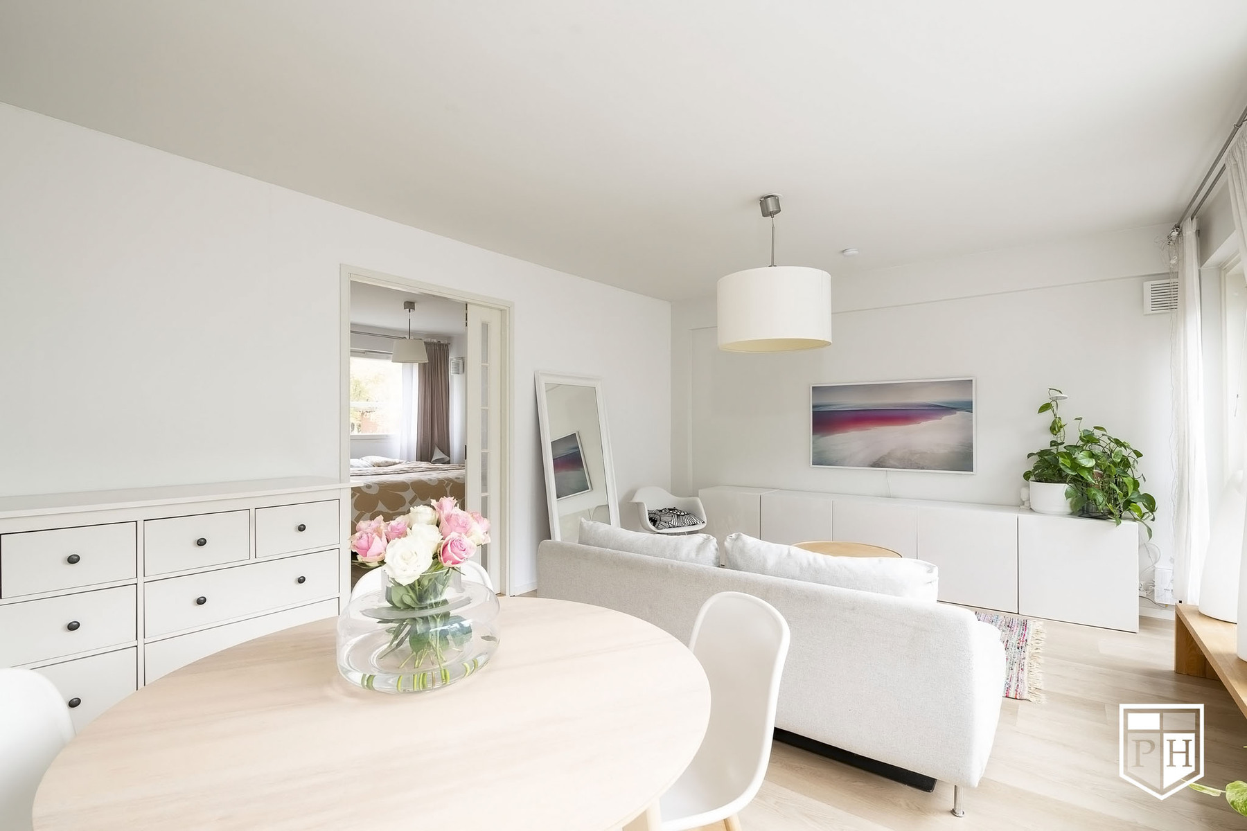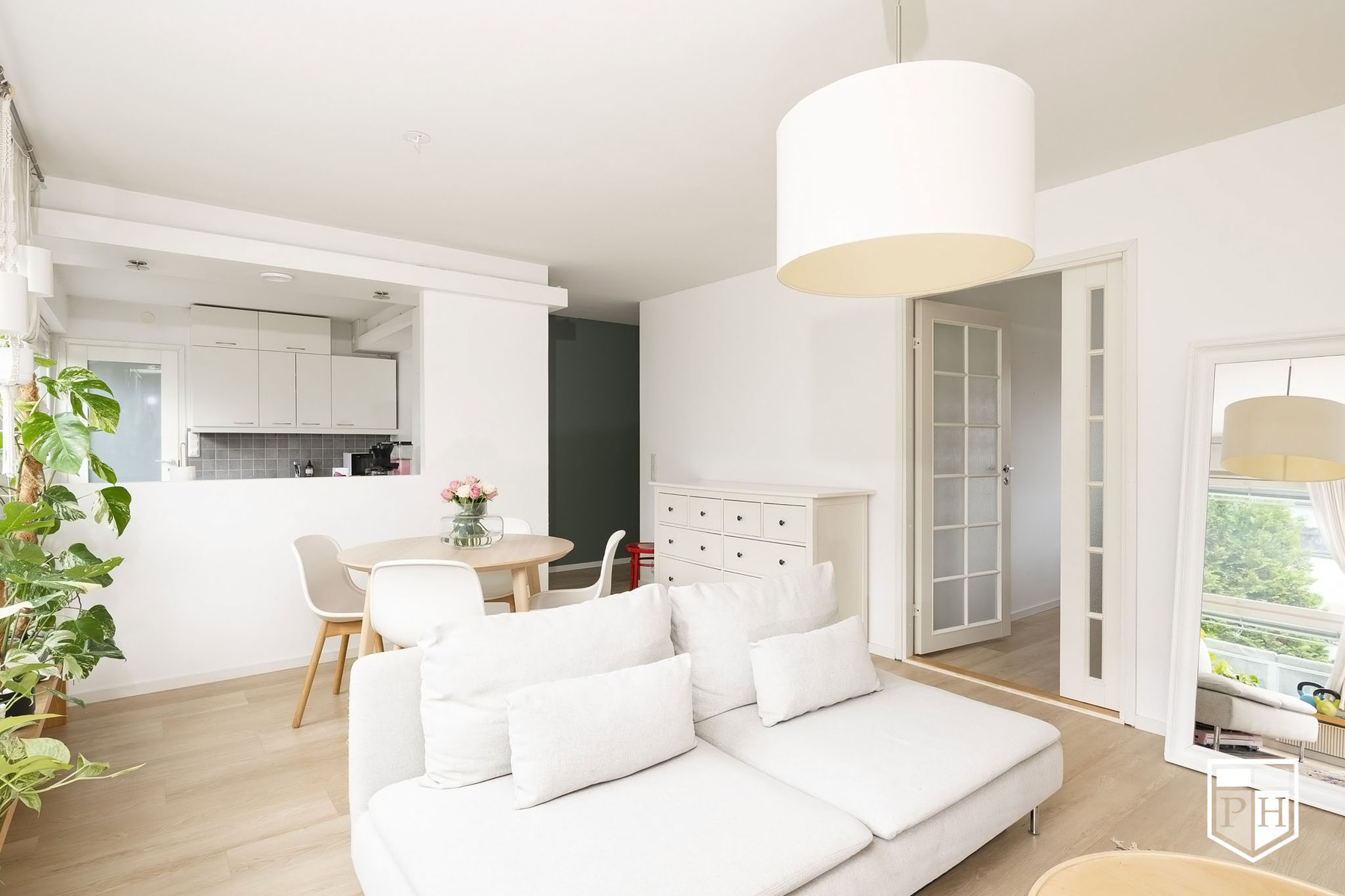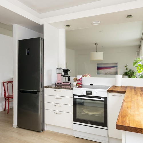 Avaran olohuoneen ja keittiön muodostama yhtenäinen tila tarjoaa valoisan ja toimivan sydämen kodille. 1970-luvun arkkitehtuurille tyypilliset suuret ikkunat tuovat luonnonvalon kauniisti sisään ja luovat ilmavan tunnelman.