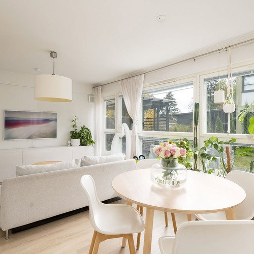 Kodissa yhdistyvät toimiva pohjaratkaisu, luonnonläheinen ympäristö ja rauhallinen sijainti. Erinomainen vaihtoehto esimerkiksi pienelle perheelle tai pariskunnalle, joka arvostaa väljyyttä ja luonnonläheisyyttä hyvien yhteyksien äärellä.