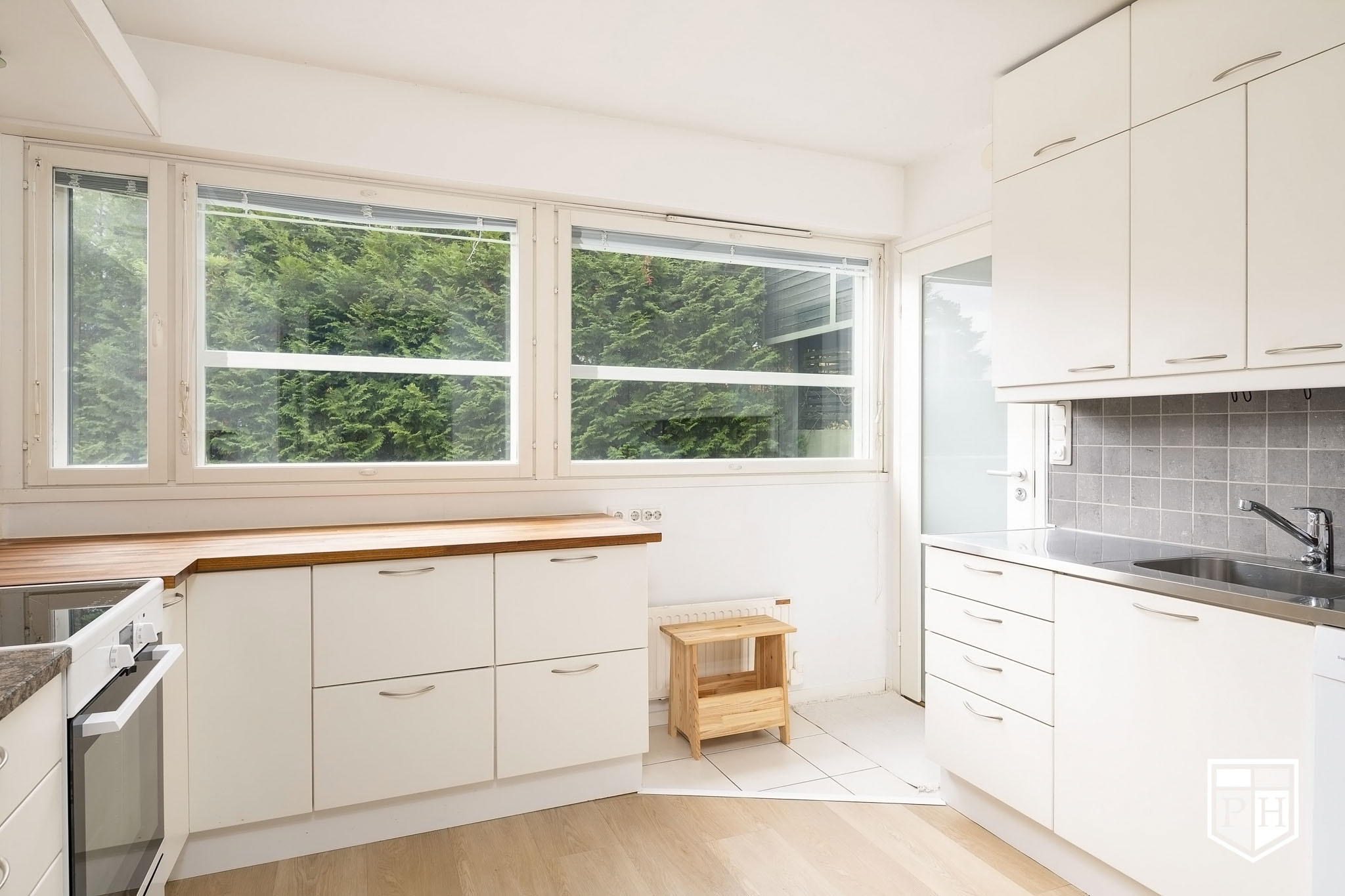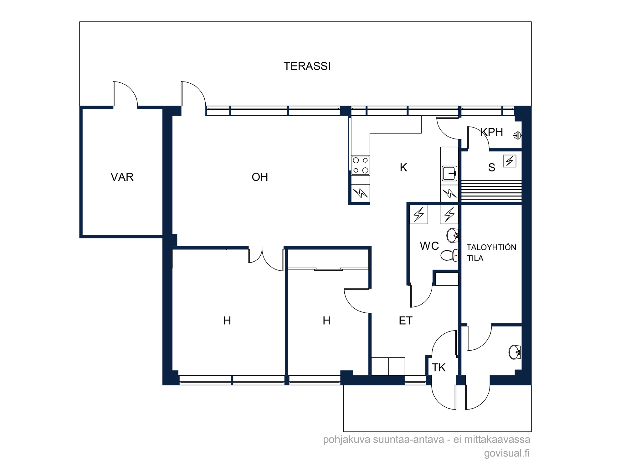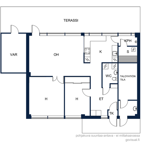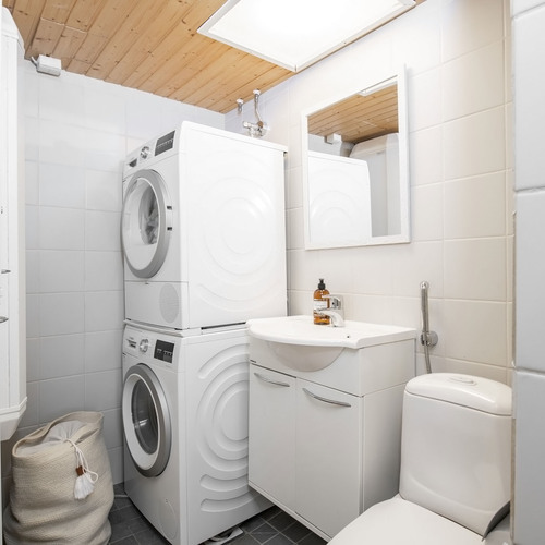 Asunnossa on lisäksi kaksi makuuhuonetta, pesuhuone, sauna, erillinen wc/kodinhoitotila ja ulkovarasto. Olohuoneesta avautuu kulku suojaisalle terassille ja omalle pihalle, jossa on mukava nauttia kesäpäivistä ja grillailla ystävien kanssa. Ilmalämpöpumppu helpottaa kesän helteillä ja talven pakkasilla.