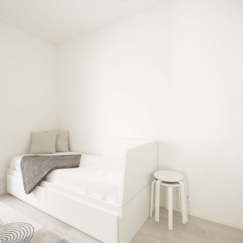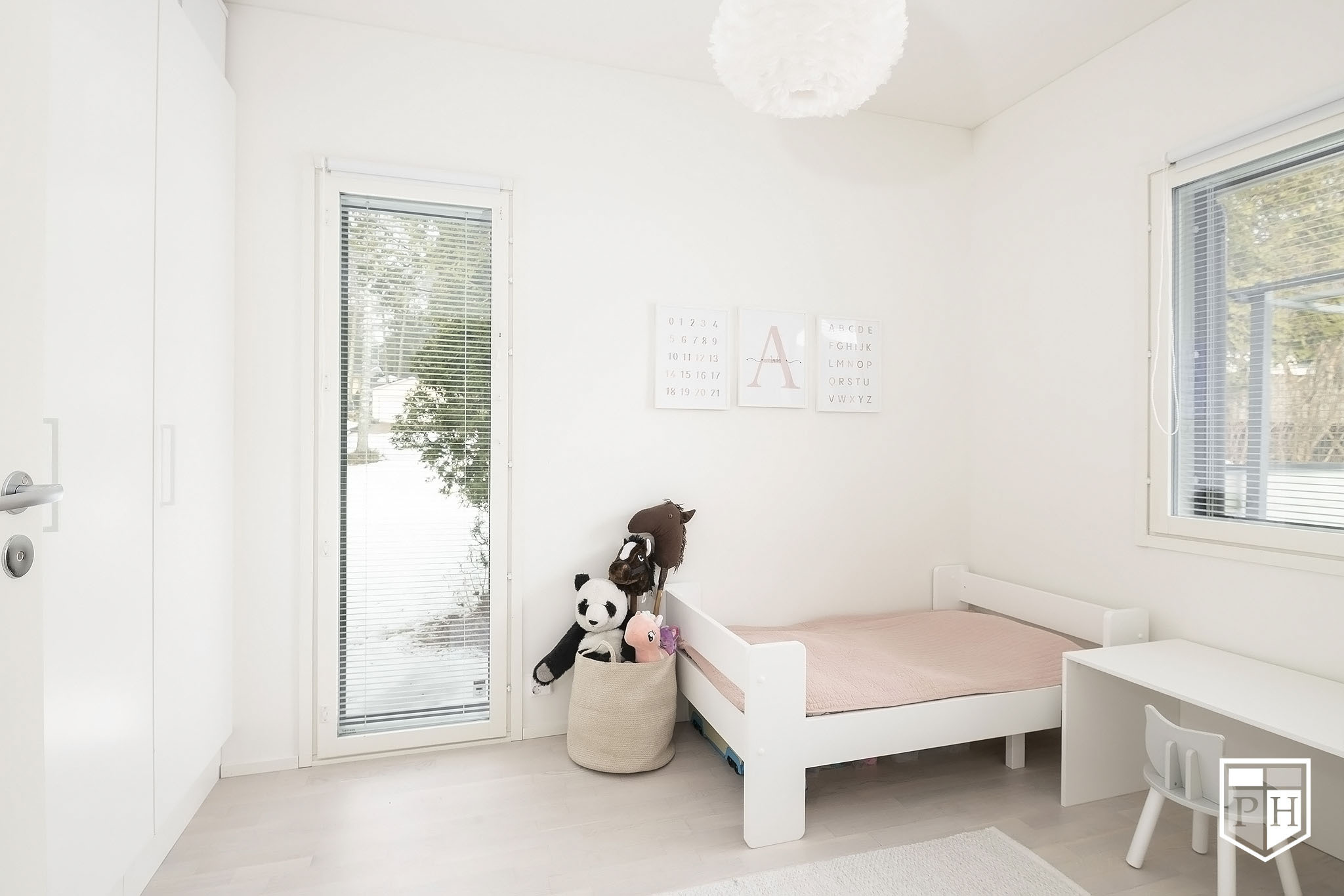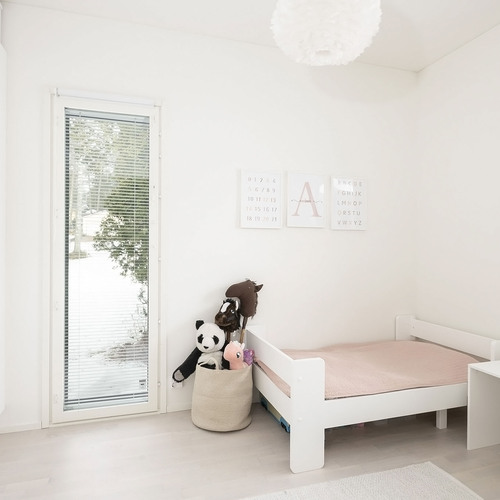 Lattia valkolakattua tammiparkettia.