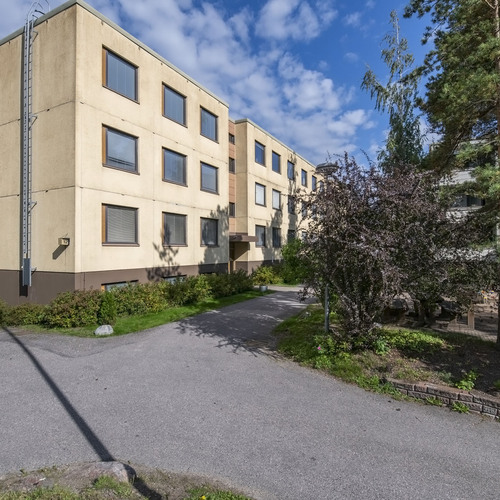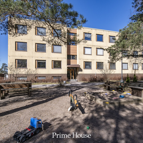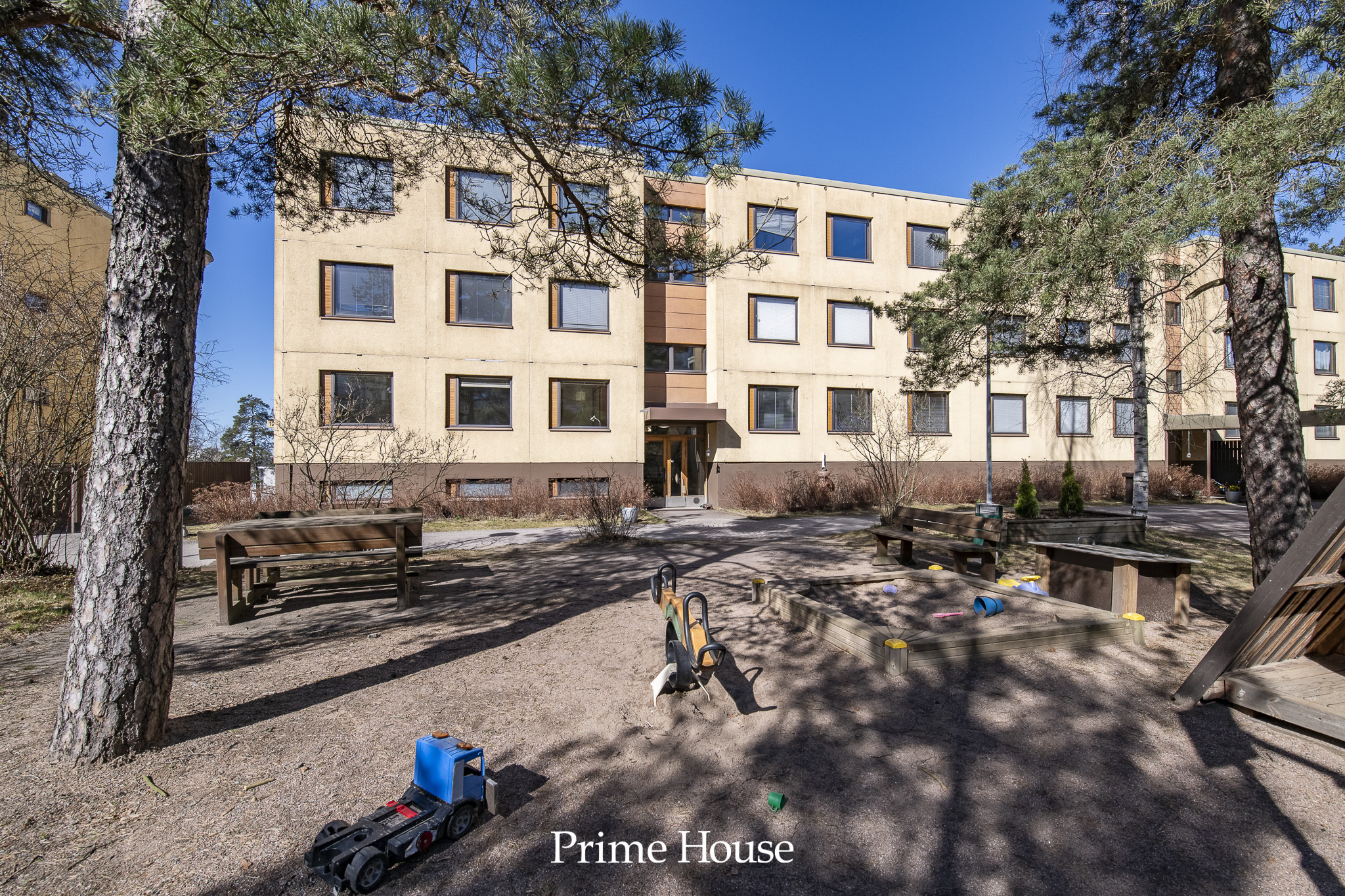 Taloyhtiö sijaitsee päättyvän tien päässä, joka mahdollistaa lapsille turvallisen leikkiympäristön.