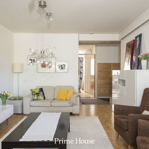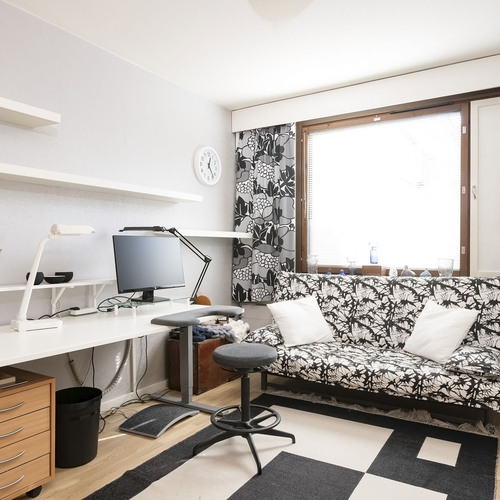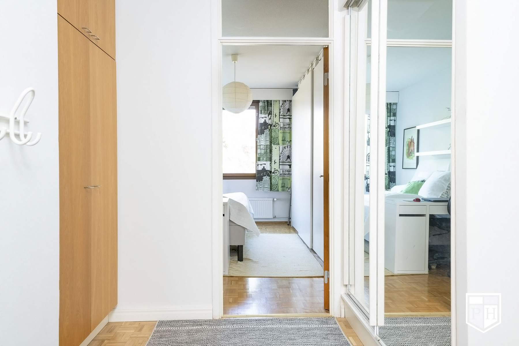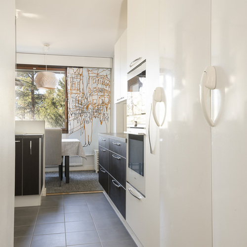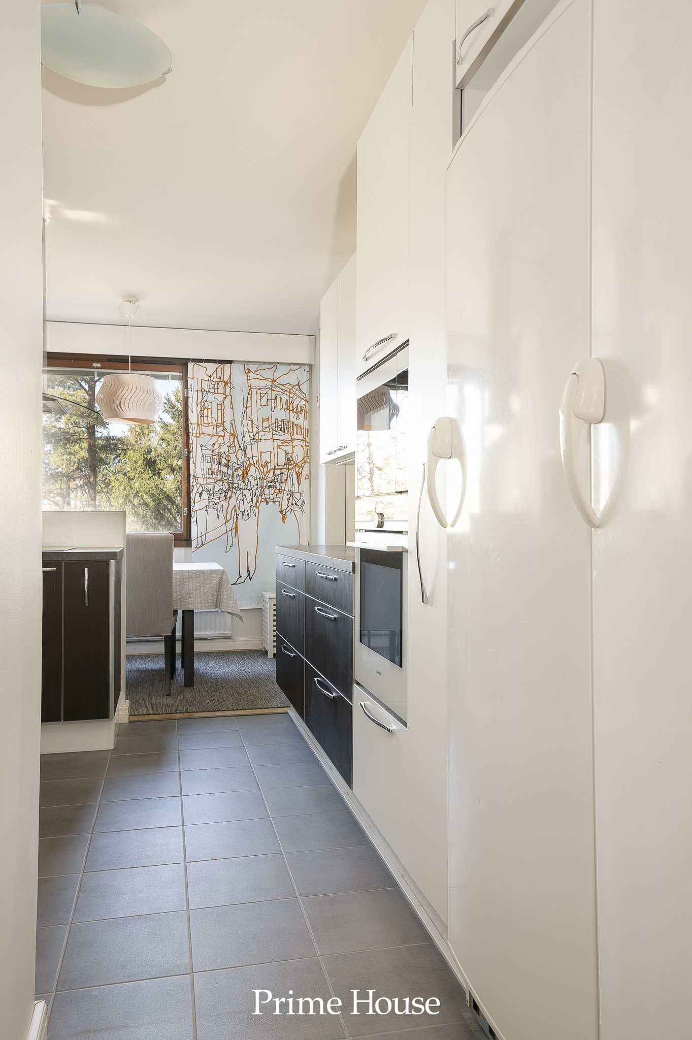 Tyylikäs Puustellin keittiö kutsuu kokkailemaan. Arjen helpotusta tuo ylösnostettu astianpesukone, piiloon sijoitetut pienkoneet ja reilut laatikostot. Ruokailutilan erottaa keittiöstä niemeke, johon on sijoitettu induktioliesitaso ja liesituuletin. Tilavassa olohuoneessa mahtuu isompikin porukka viettämään yhteistä aikaa. Olohuoneesta on käynti lasitetulle parvekkeelle, josta avarat ja vehreät näkymät. Tilava eteinen mahdollistaa monta yhtä aikaisesti lähtevää.