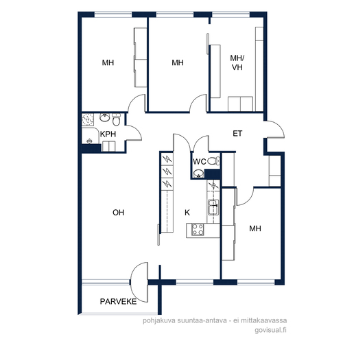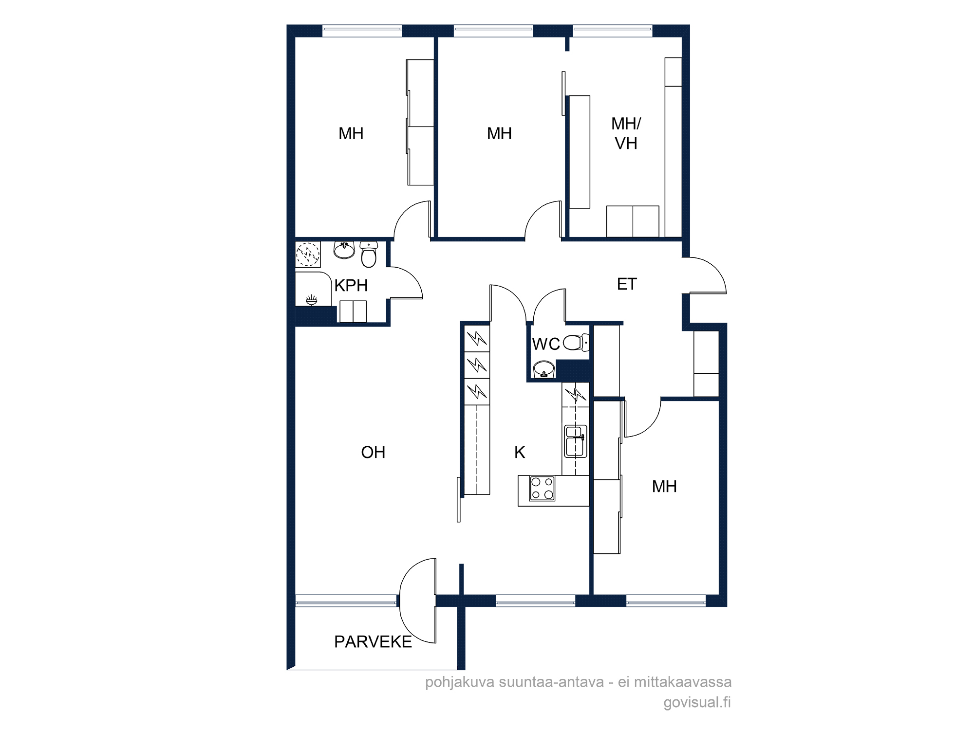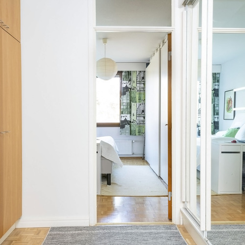 Makuuhuoneita on alkujaan ollut neljä, mutta yhdestä on myöhemmin tehty iso vaatehuone. Mahdollista muuttaa takaisin makuuhuoneeksi.
