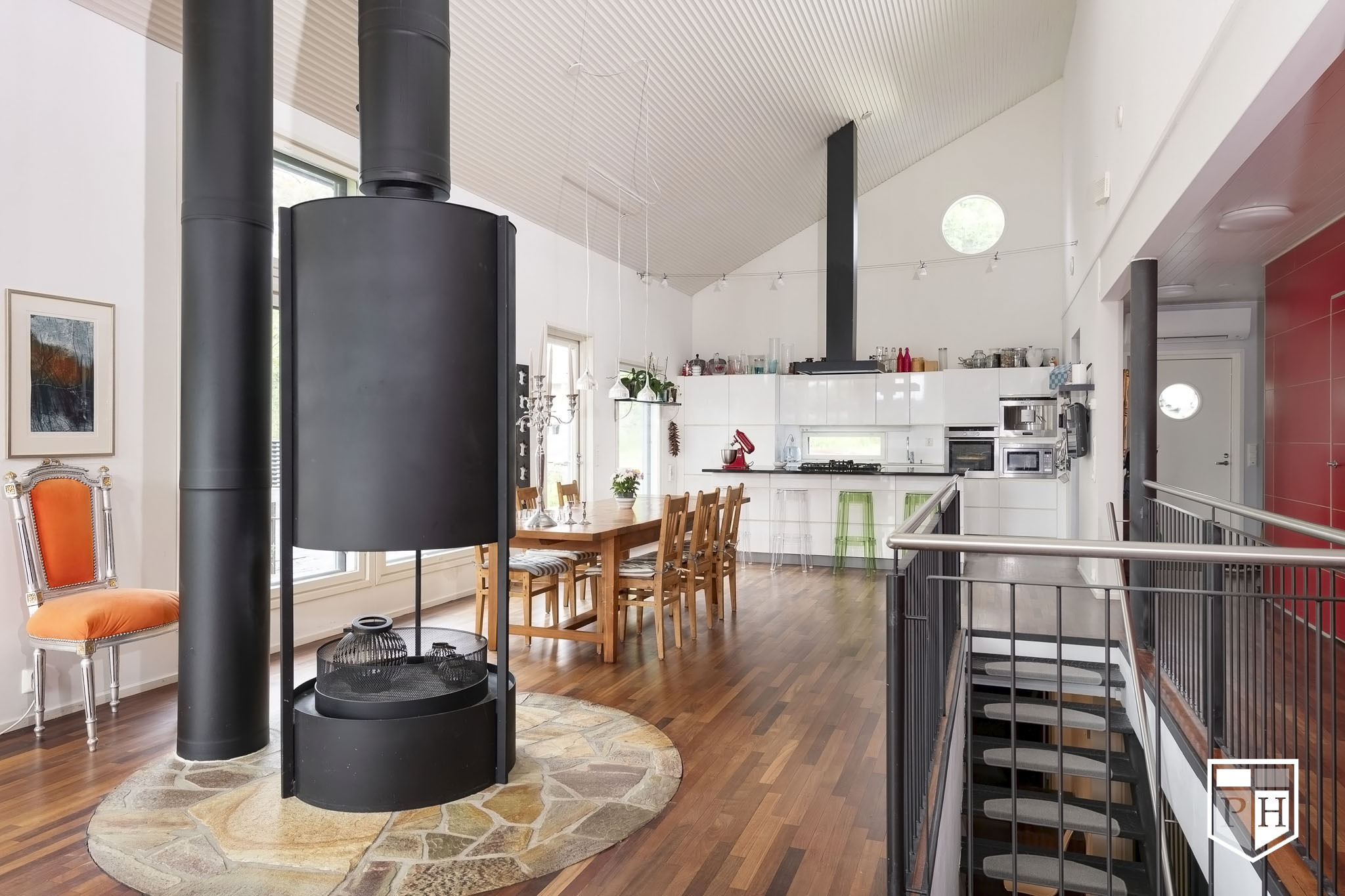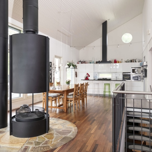 Talo hurmaa lämpimällä vaaleansävyisellä julkisivullaan ja laadukkailla sisäpintamateriaaleillaan. Avara ja valoisa olohuone suurella ikkunapinnalla tuo tilaan luonnonvaloa ja luo avaruuden tuntua. Olohuone yhdistyy tyylikkääseen avokeittiöön, jossa on Kvikin korkeakiiltoiset ovet, graniittitasolla varustettu saareke ja laadukas kaasuliesi viidellä polttimella – unelmakeittiö ruoanlaittajalle! Keittiöstä on käynti tilavalle terassille, joka tarjoaa kesäisin viihtyisän jatkeen oleskelutiloille.