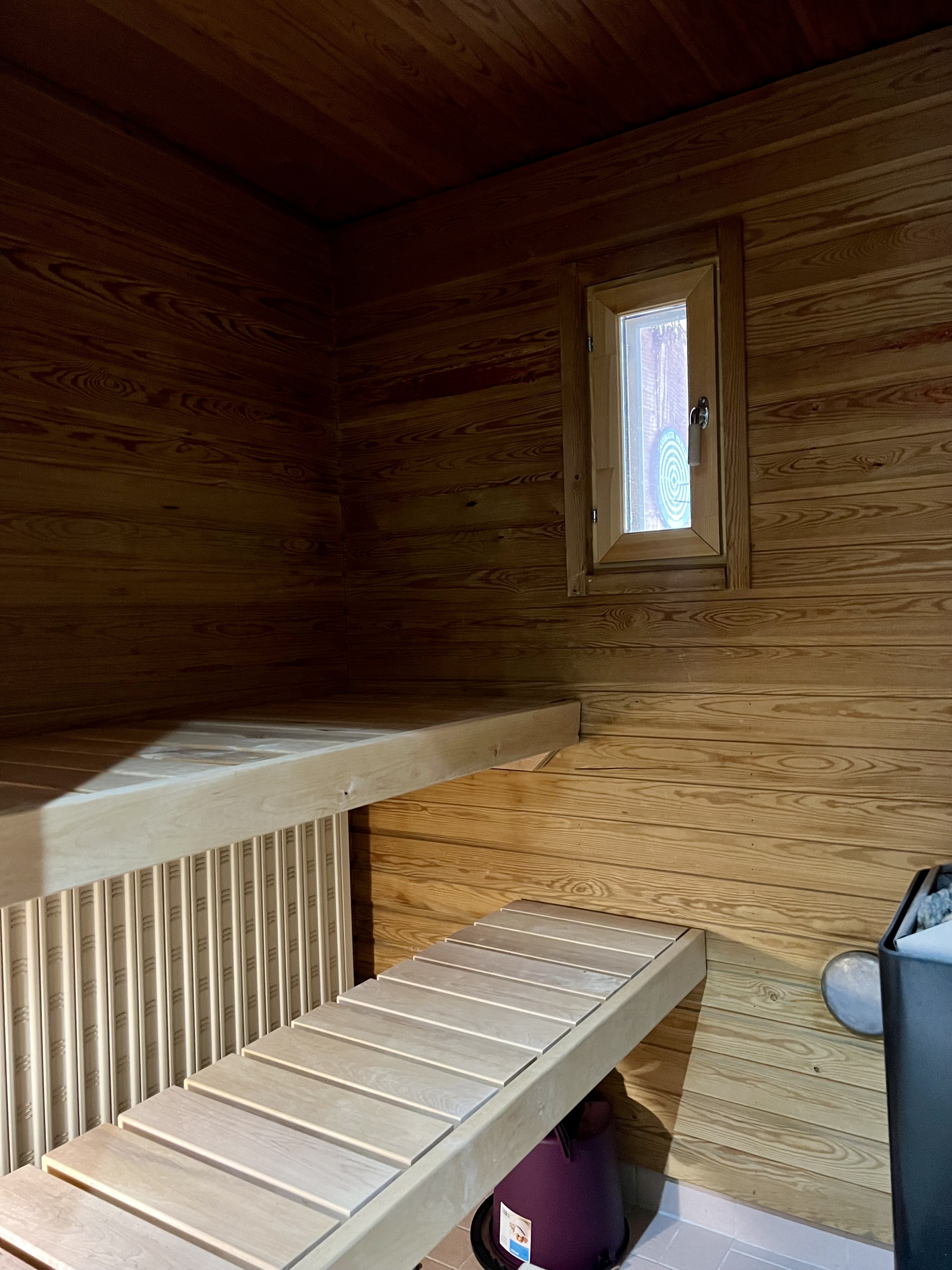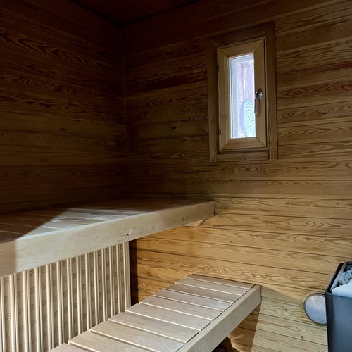 Sähkökiuas, ikkuna. Lauteet uusittu 2026.