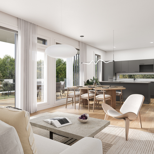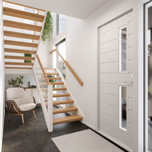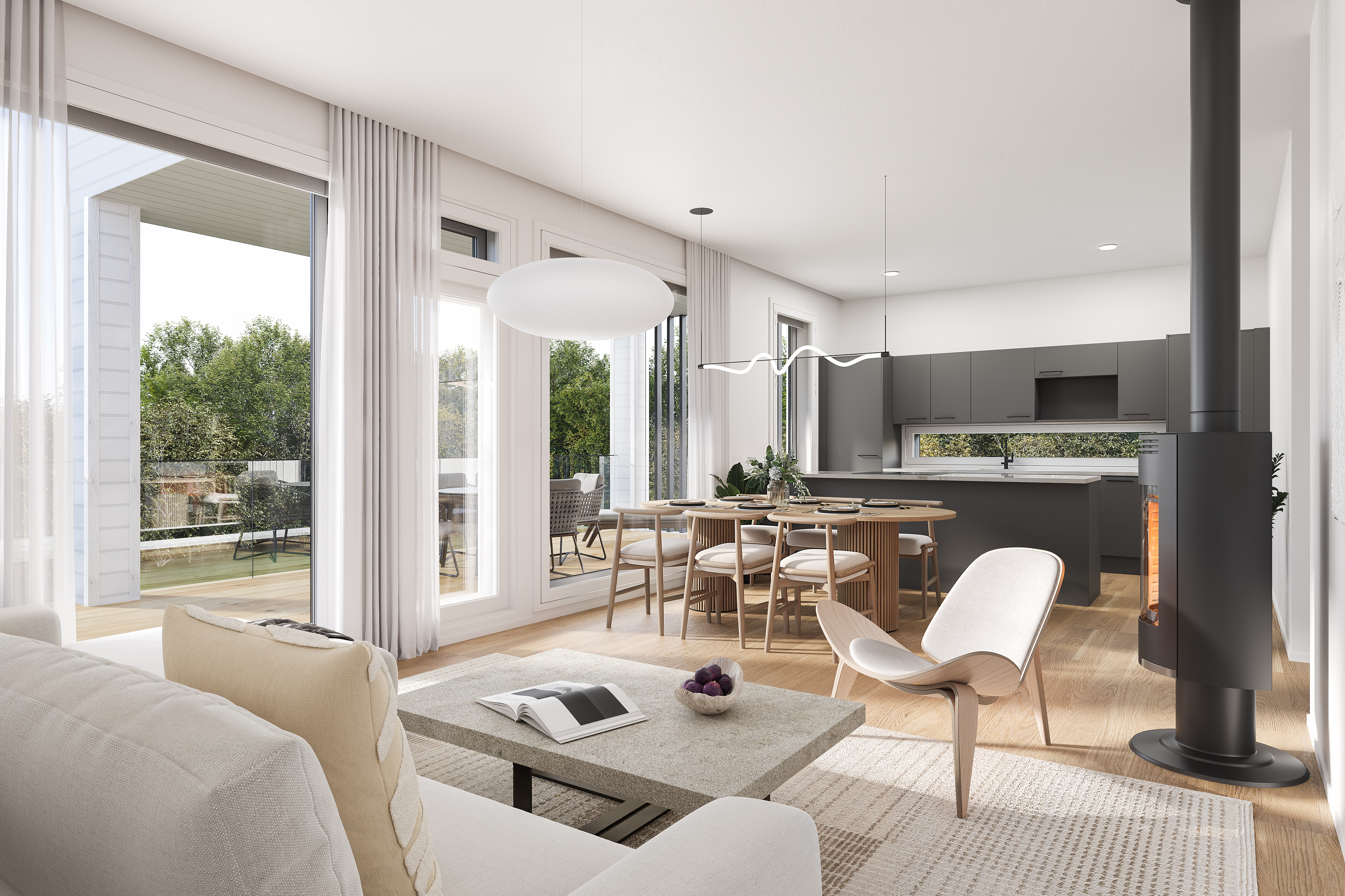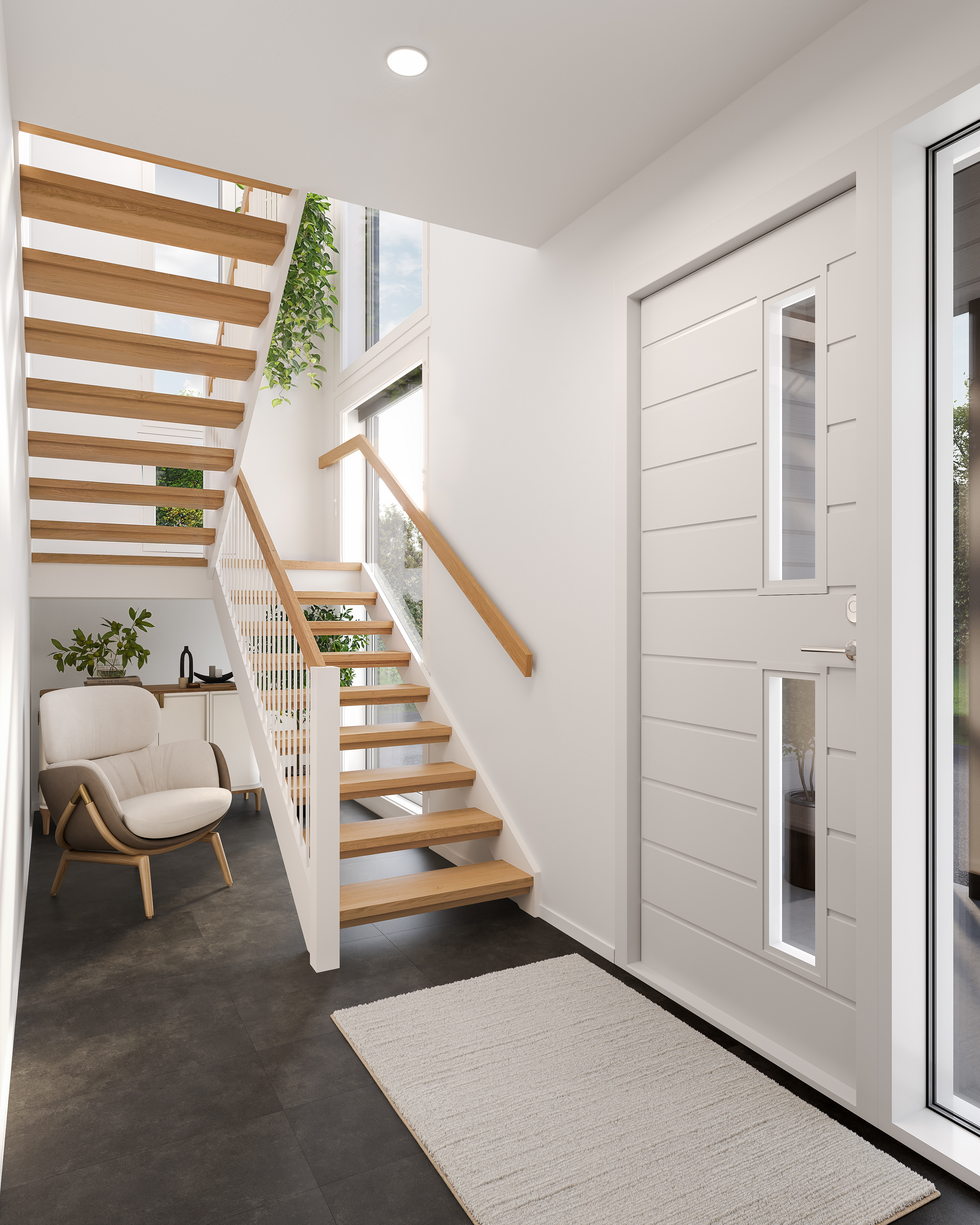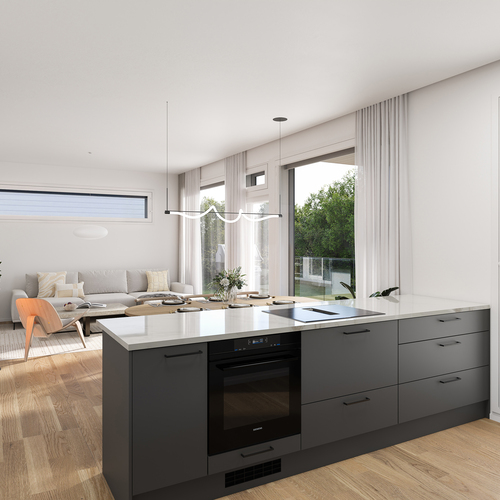 Valoisat sisätilat, suuret ikkunapinnat sekä lounaaseen avautuvat terassit ja parvekkeet luovat viihtyisän ja avaran tunnelman. Julkisivut ovat tyylikkään valkoiset, kokonaisuutta täydentävät tummanharmaat katto-, ovi-, ikkuna- ja korostusverhoukset. Tehokas pohjaratkaisu taipuu moninaisiin käyttötarkoituksiin. Yläkerran leveä ja hyvin kalustettava katettu parveke yhdistettynä olohuone/ruokailuhuone -tiloihin tarjoaa mahtavat puitteet juhlaan ja illanviettoon. Alakerran huoneet sopivat mainiosti esim. etätyöhuoneeksi, mediahuoneeksi, kuntoilutilaksi, vierashuoneeksi ym. Taloihin kuuluu lisäksi katettu 28 m² terassi, sekä pääosin katettu 3 metriä leveä 28 m² parveke lasikaiteella ja 22 m² autokatos.