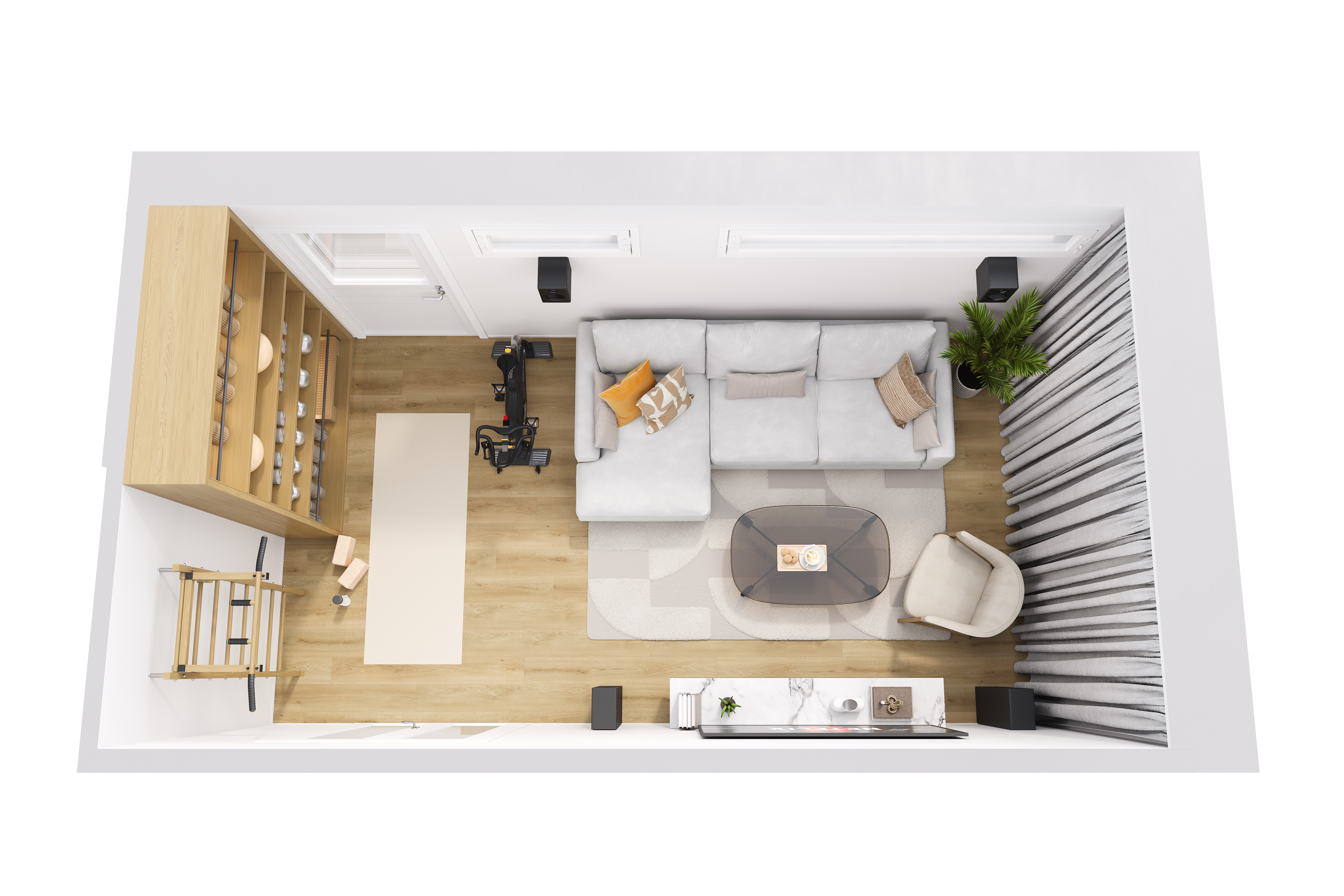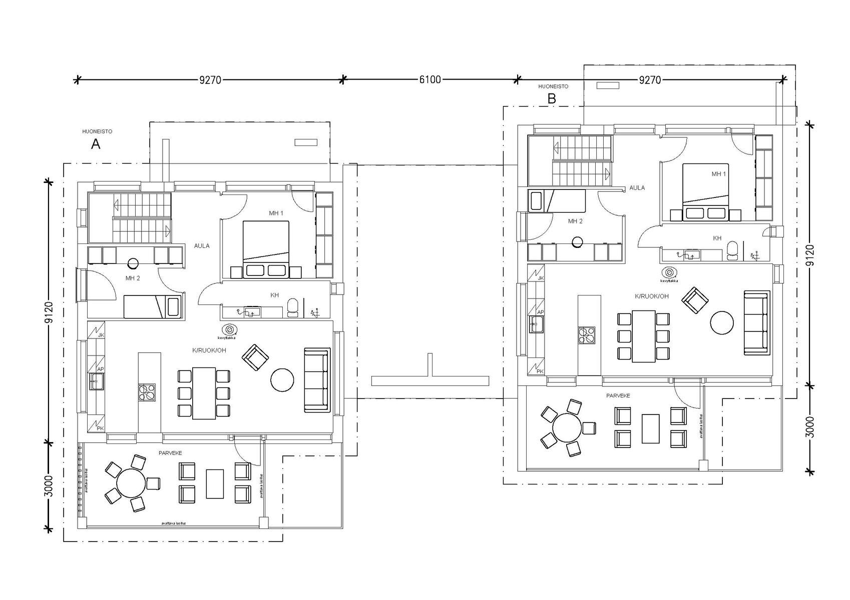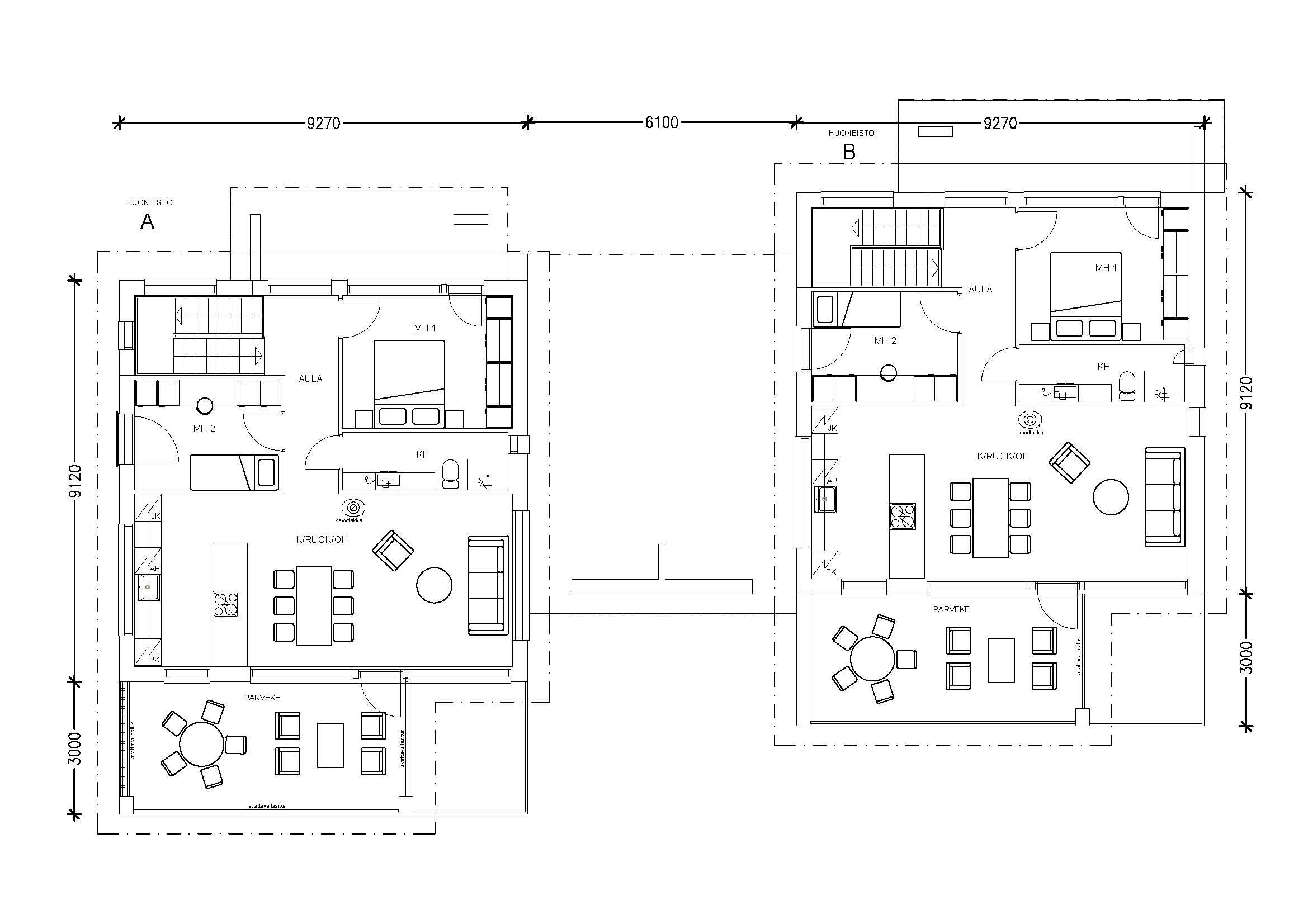 Kts. erillinen kalustesuunnitelma ja huonekortti.