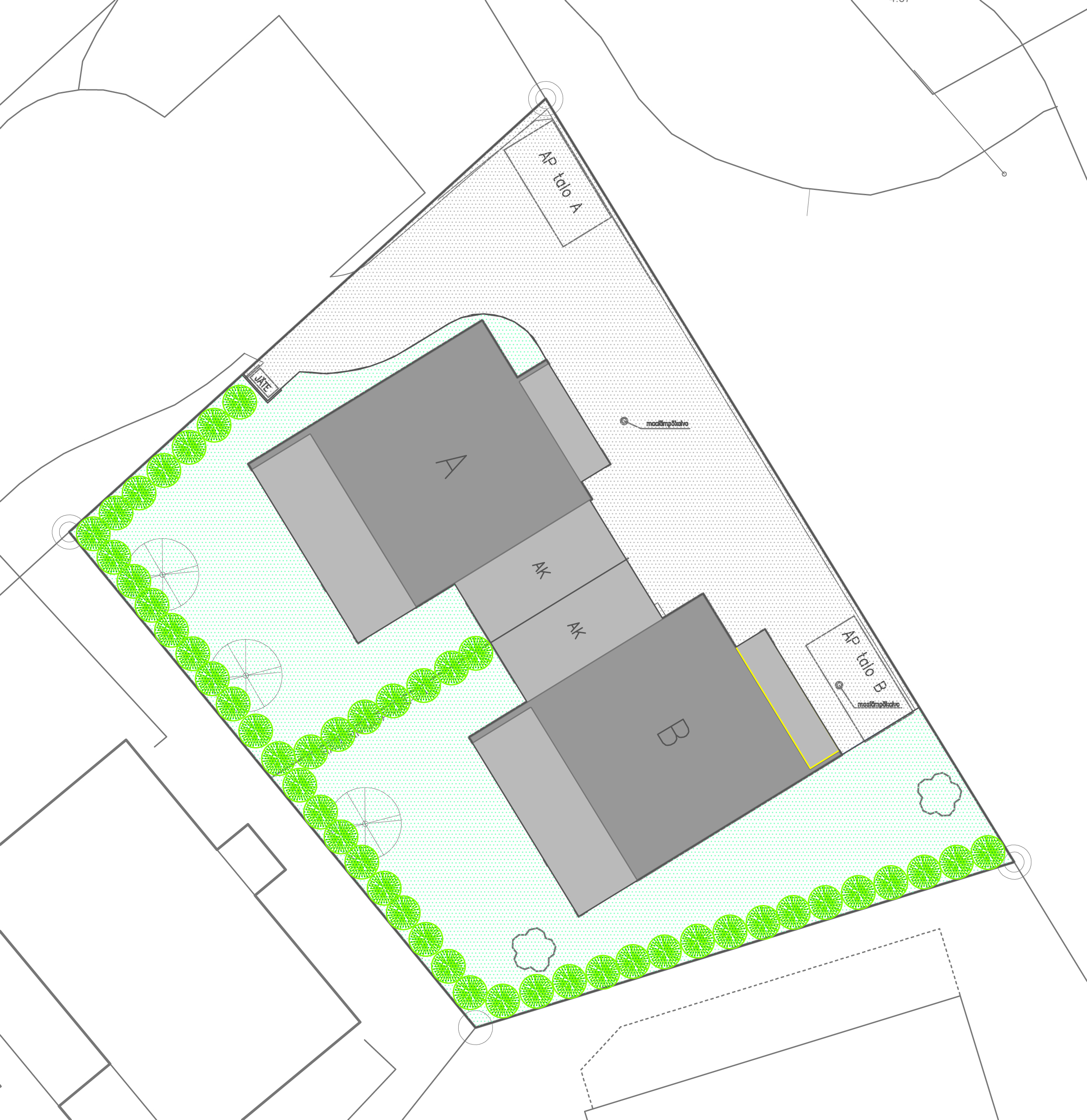 AOR2, II, e=0,20. Rivitalojen ja erillisten tai muiden kytkettyjen asuinrakennusten korttelialue.