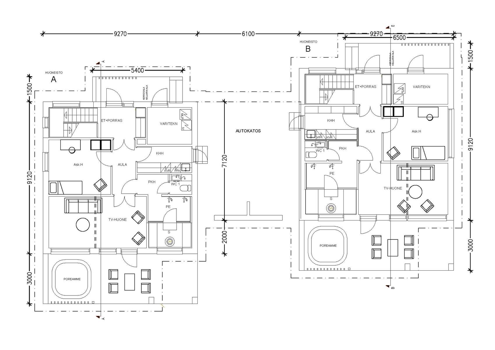 3h, k, rt, tv-huone, ask. h., s, ph, erill. wc, kph/wc, var./tekn.tila