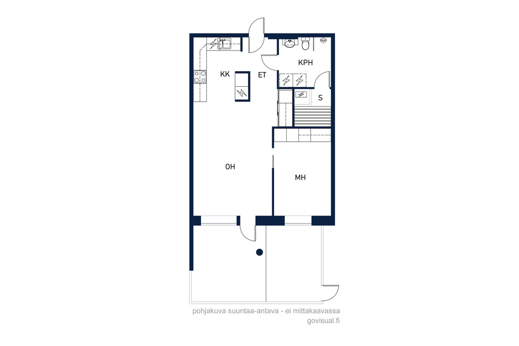 Huoneistoselitelmä | 2h, k, ph/wc, s + aidattu terassi ja piha |
