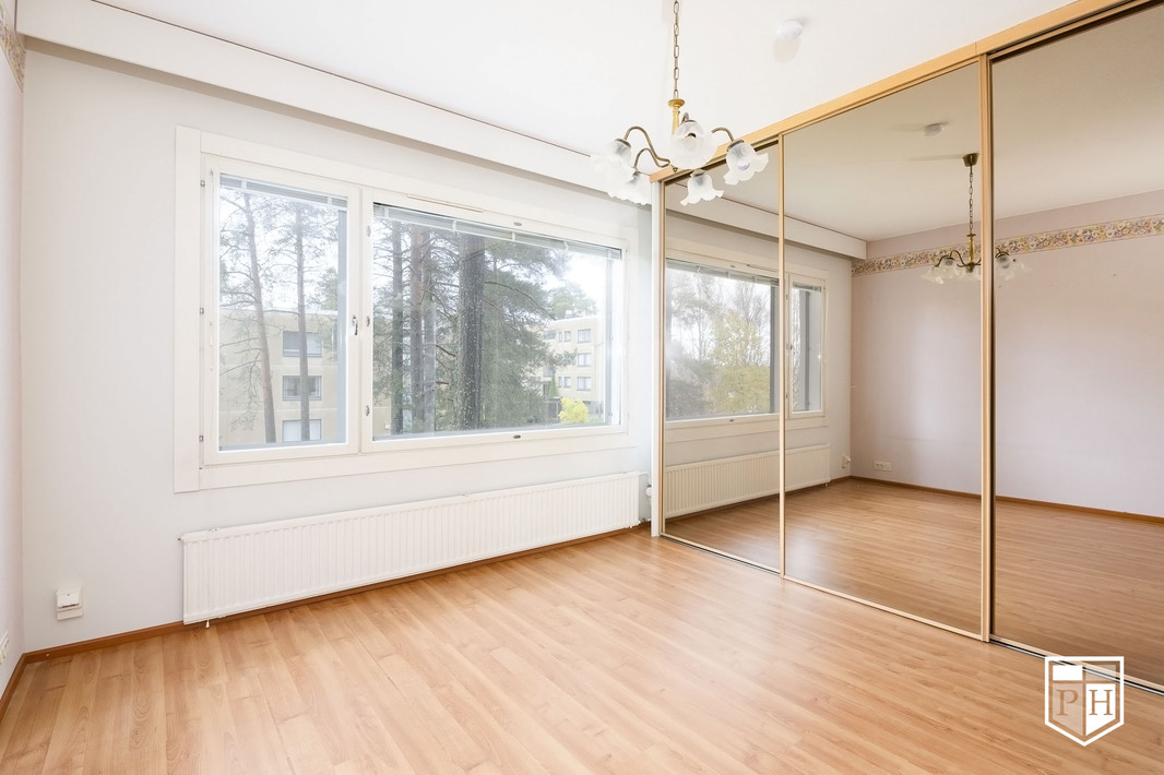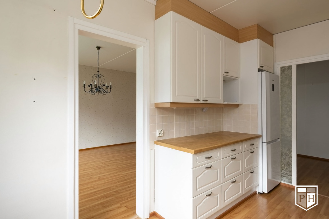 Keittiössä on hyvin säilytys- ja työtilaa sekä tila ruokapöydälle. Kylpyhuone ja erillinen wc on remontoitu, ja ne ovat siistikuntoiset ja toimivat. Huoneistossa on lisäksi kaksi tilavaa makuuhuonetta kaapistoineen.