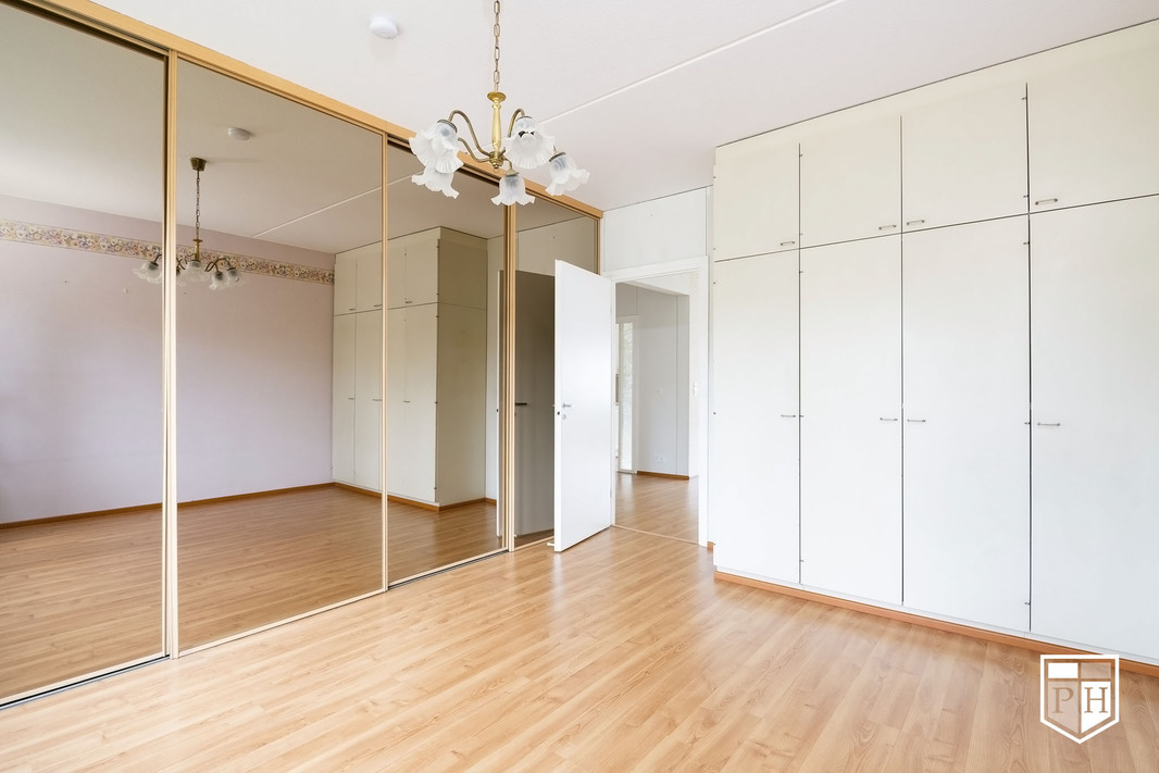 | Makuuhuoneen kuvaus | Kaapistot, lattia laminaattia. |