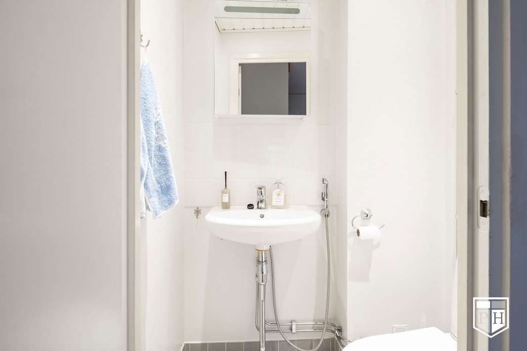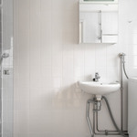 | Kylpyhuoneen kuvaus | Suihku, suihkuseinä, pesukoneliitäntä, Mielen pesukone, pesuallas, peilikaappi, pyyhekuivain. Seinät ja lattia laattaa. Ikkuna. |