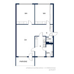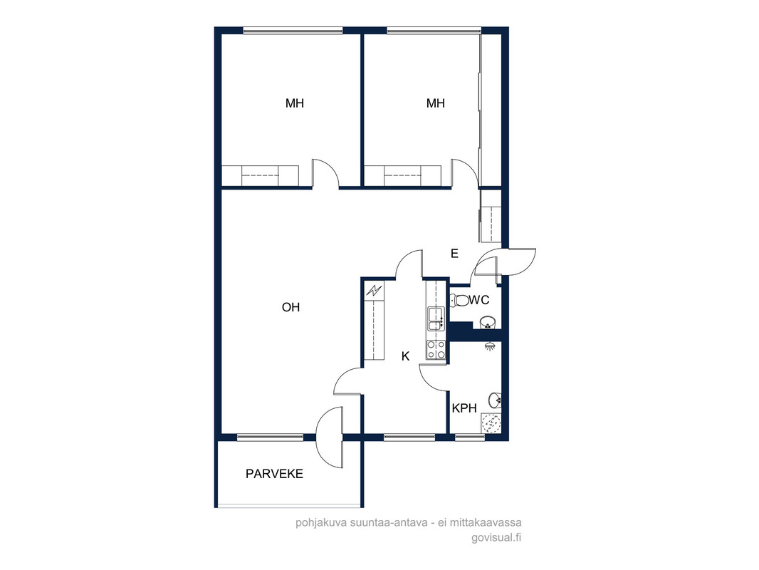 | Huoneistoselitelmä | 3h, k, kph, wc + lasitettu länsiparveke |