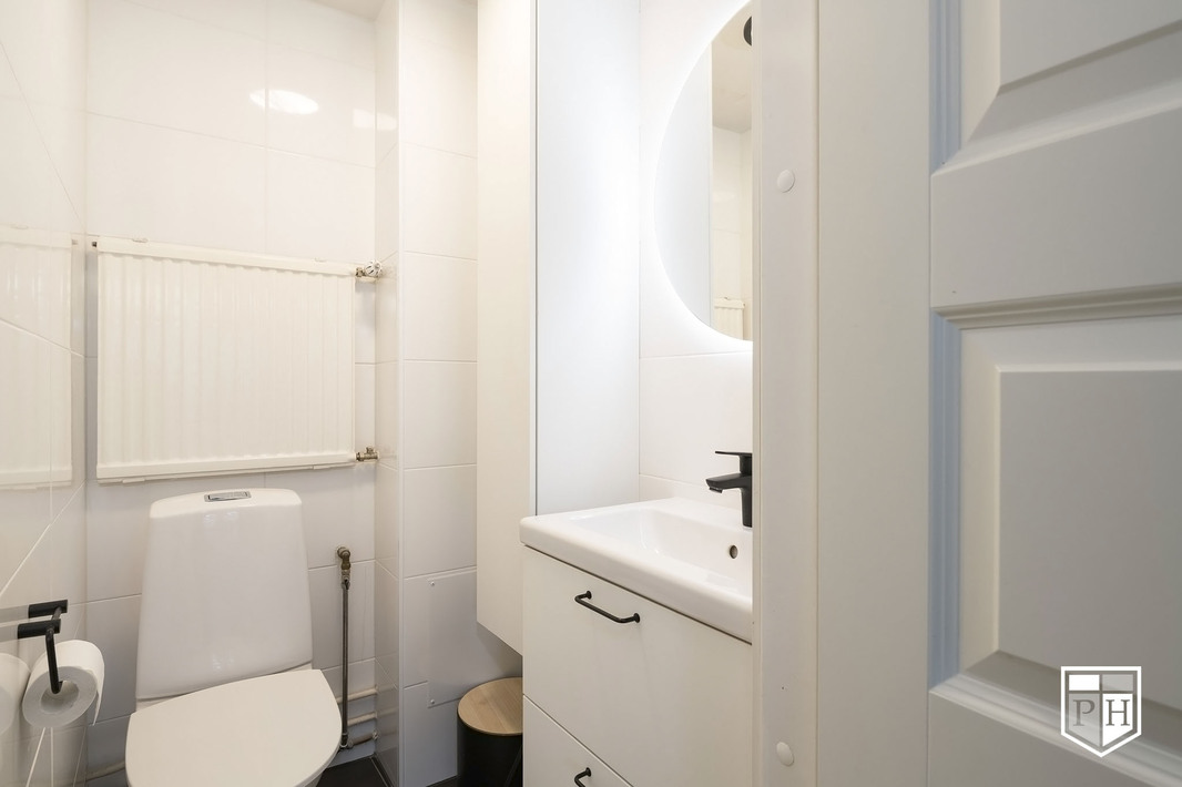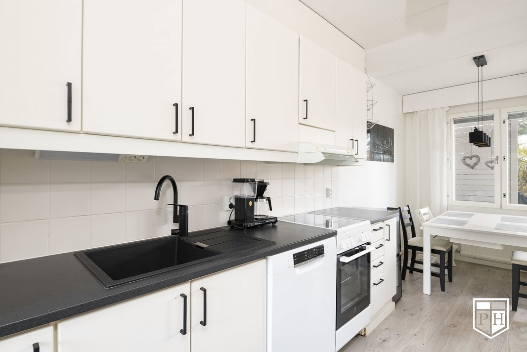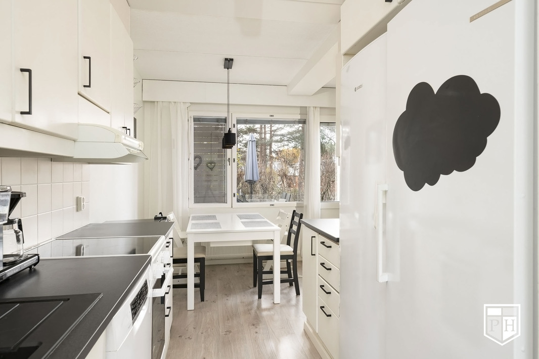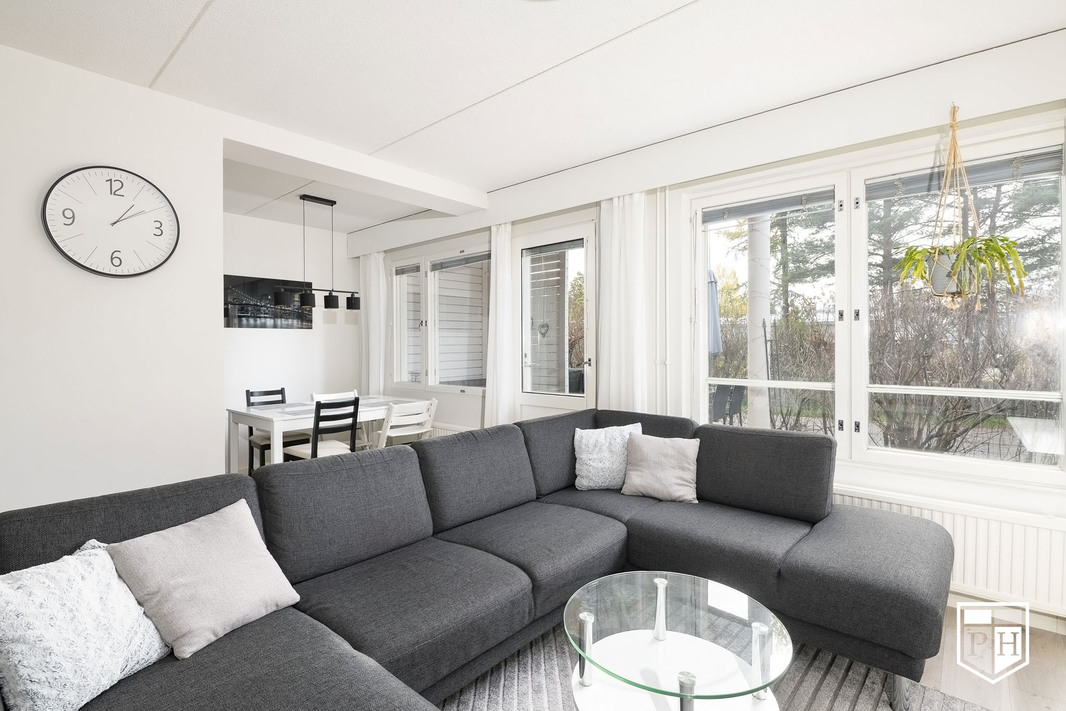 Tilaratkaisultaan toimiva pienen perheen koti. Huoneisto on kauttaaltaan vaalea ja valoisa kokonaisuus. Eteisestä avautuu avara näkymä olohuoneeseen ja keittiöön. Olohuoneesta on käynti aurinkoiselle terassille ja pihalle. Eteisen yhteydessä on uusittu erillinen wc.