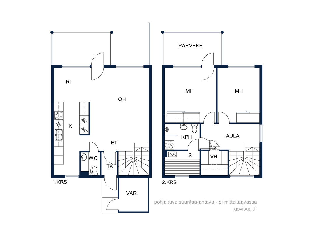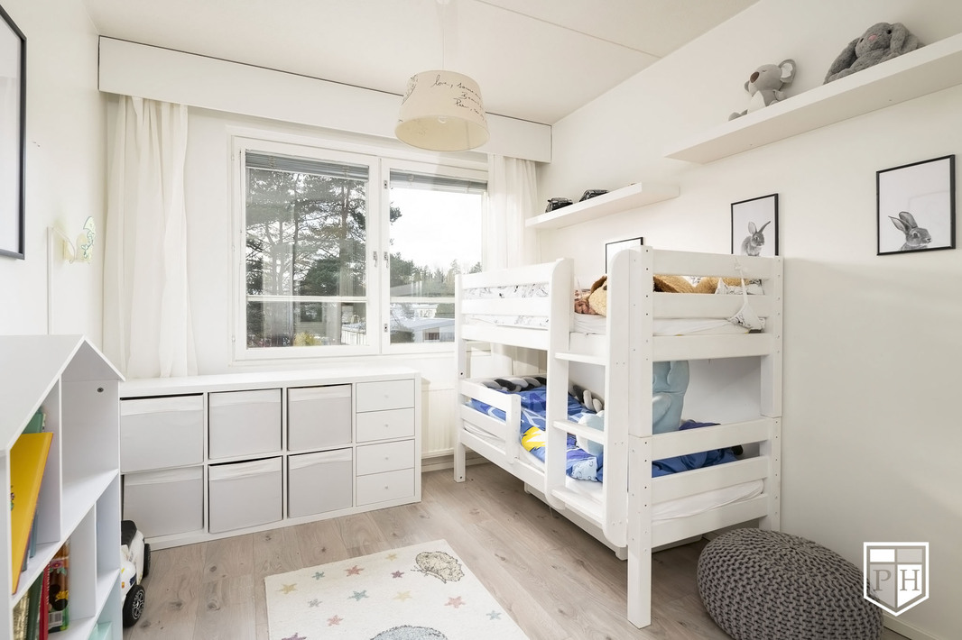 | Makuuhuoneen kuvaus | Kaksi tilavaa makuuhuonetta, molemmissa liukuovikaapisto. Lattia laminaattia. |