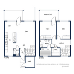 | Huoneistoselitelmä | 3h, k, ph, s, erill. wc, vh + parveke, autokatos, ulkovarasto |