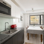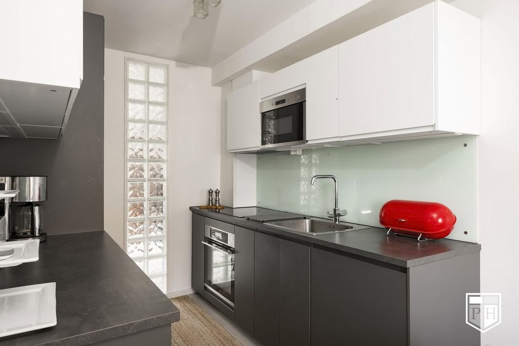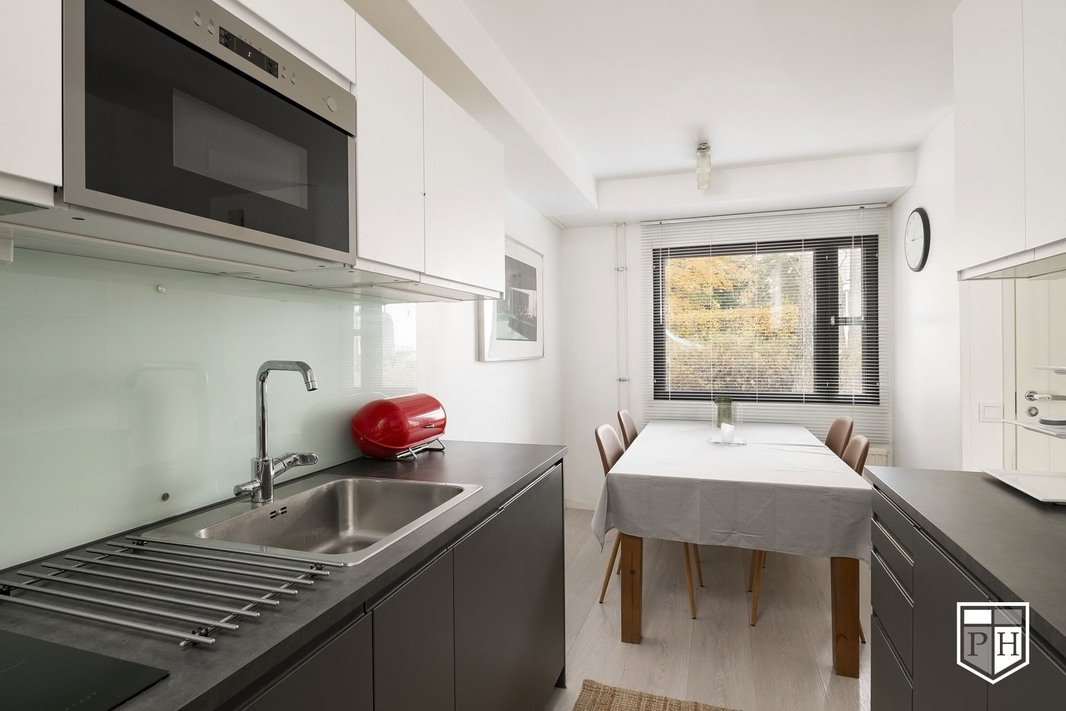 | Keittiön varustelu | Uusittu 2020. Integroitu jääkaappi, pakastinkaappi, induktioliesitaso, erillisuuni, liesikupu huippuimurilla, integroitu mikroaaltouuni, integroitu astianpesukone, teräsallas, laminaattitasot, LED-valaisimet. Lattia laminaattia. |