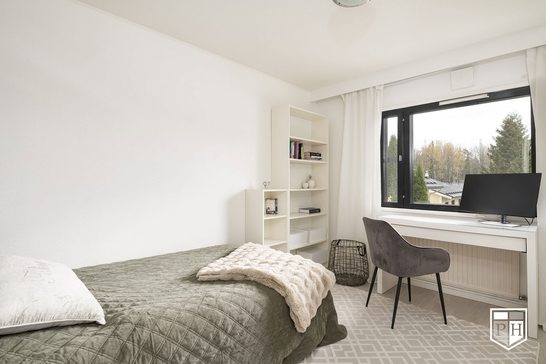 | Makuuhuoneen kuvaus | Tilavat kaksi makuuhuonetta. Lattia laminaattia. |
