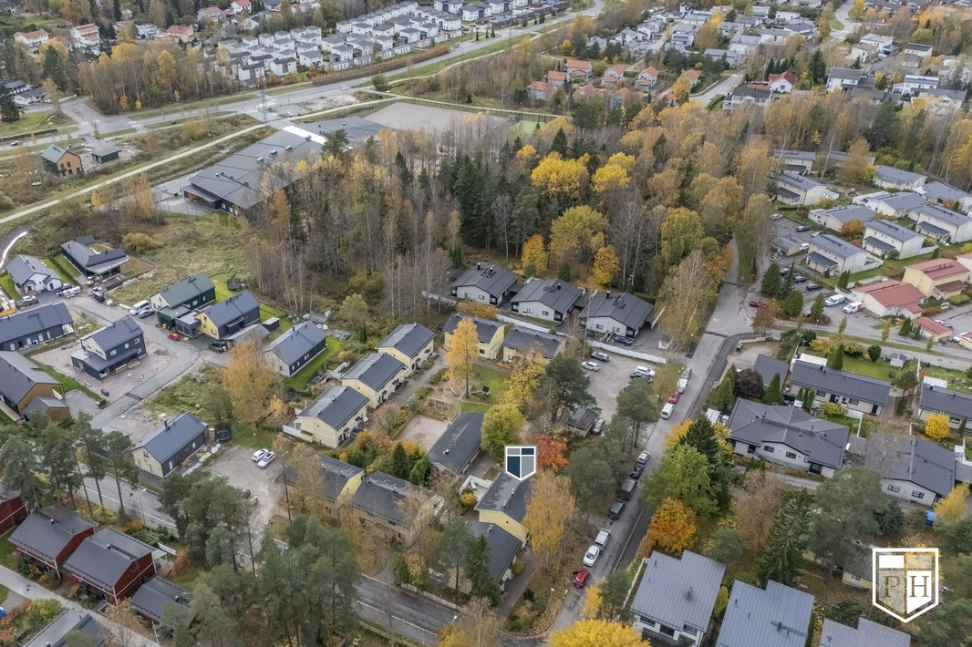Huoneistokohtaiset lämpimät varastot, ulkoiluvälinevarasto ja askarteluhuone ovat erillisessä rakennuksessa. Parkkipaikkoja on kaksi. Jokaiselle huoneistolle kuuluu sähköpistokepaikka ja kylmäpaikka.