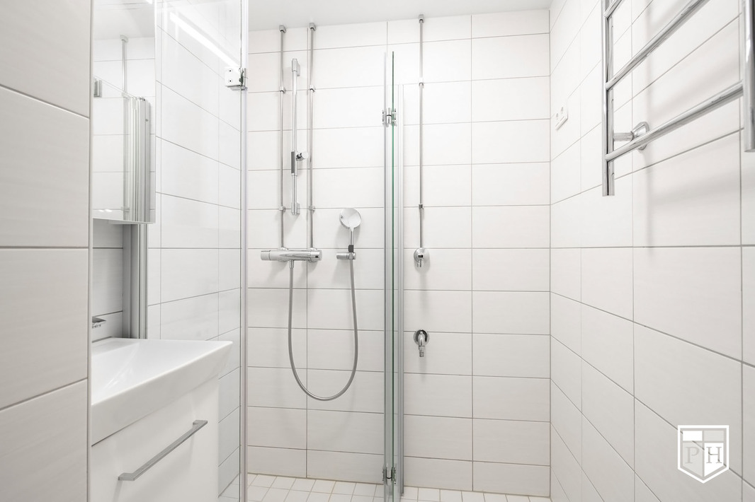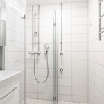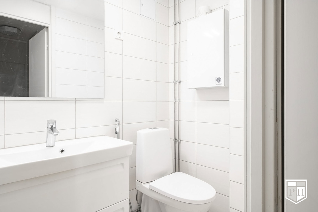 | Kylpyhuoneen kuvaus | Uusittu 2016. Suihku, suihkutaiteovet, peilikaappi, pesuallas, allaskaappi, pyyhekuivain, pesukoneliitäntä. Lattia ja seinät laattaa. |
