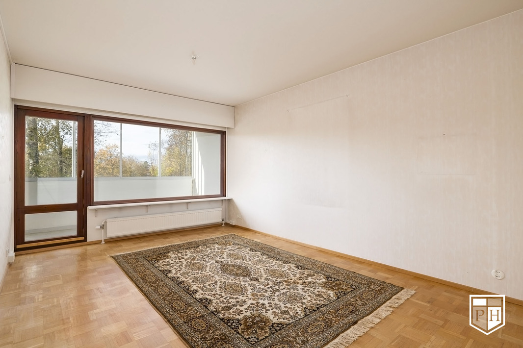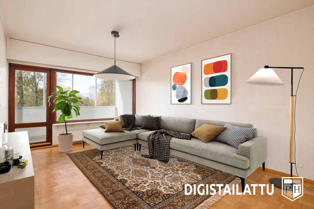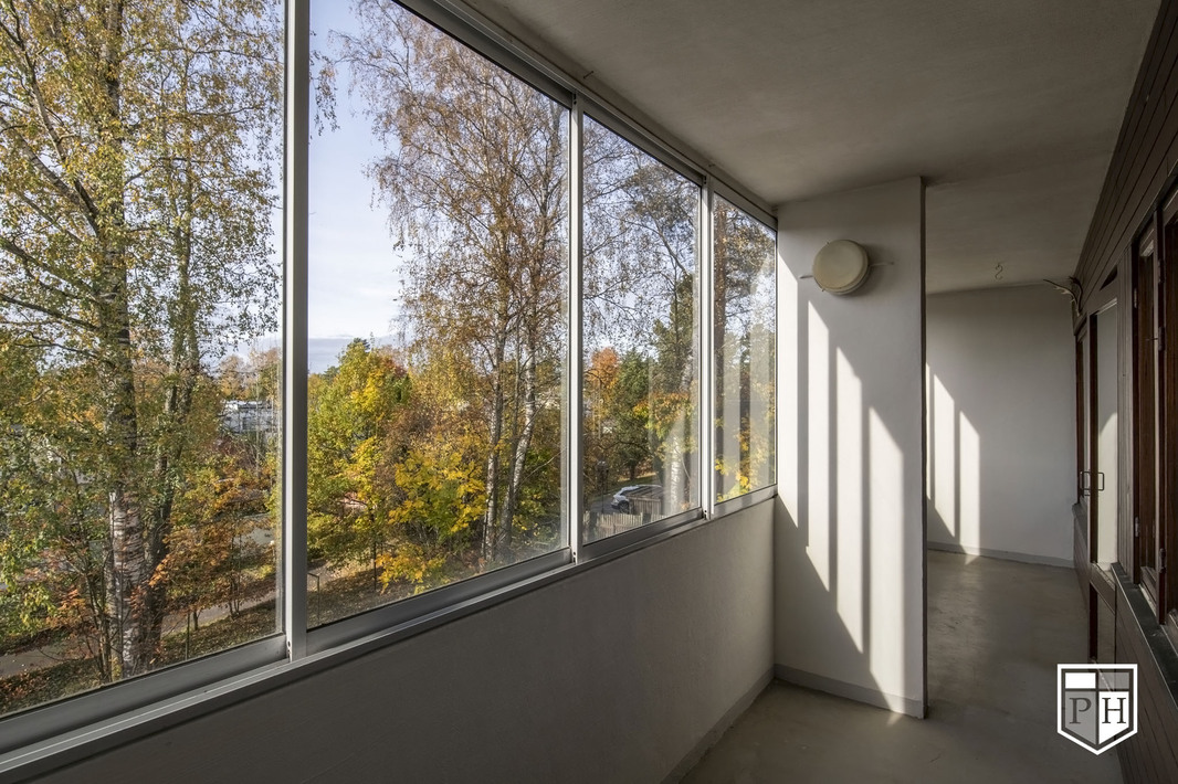 Asunnon sydän on tilava olohuone, josta on käynti koko asunnon levyiselle länsiparvekkeelle. Parveke tarjoaa vehreät näkymät ja ilta-auringon. Erillinen keittiö. Makuuhuoneet sijoittuvat asunnon eri puolille. Kylpyhuone ja erillinen wc on remontoitu putkiremontin yhteydessä.