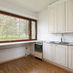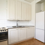 | Keittiön varustelu | Vaaleat kaapistot, laminaattitasot. Jääkaappipakastin, liesi. Seinät maalattu, lattia muovimattoa. |