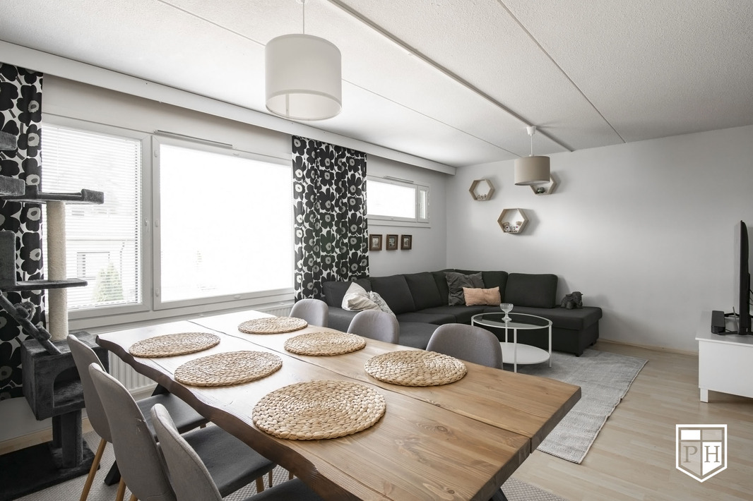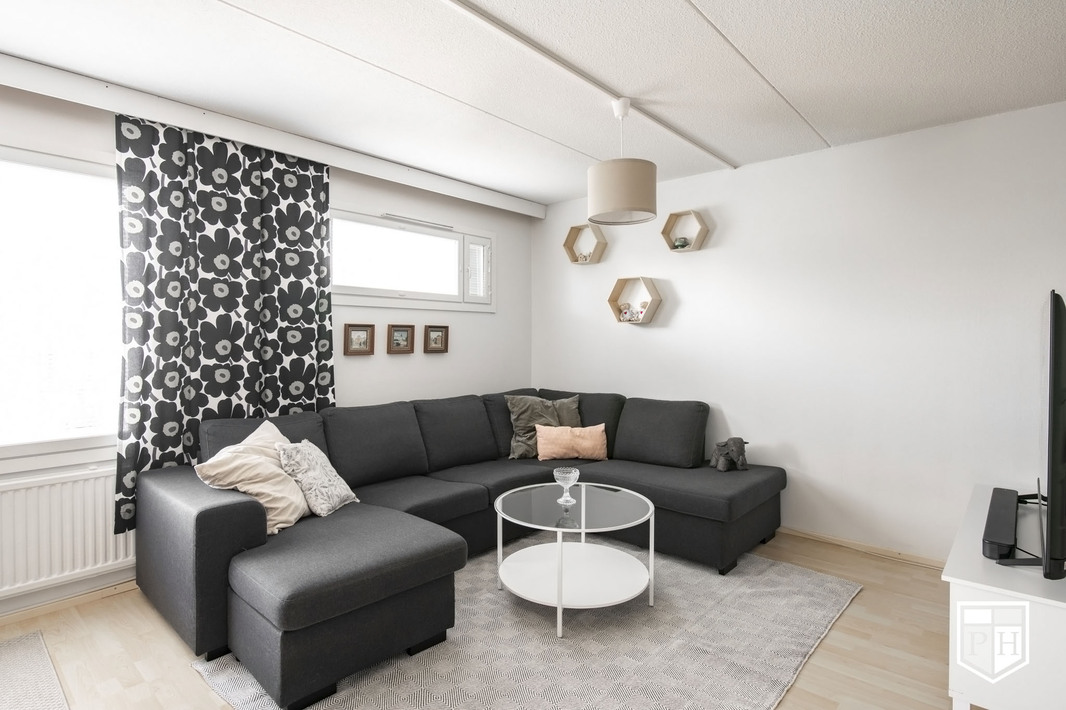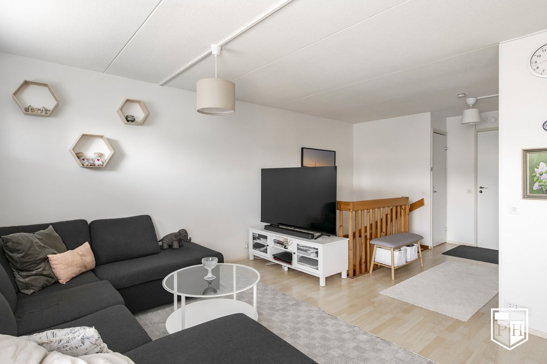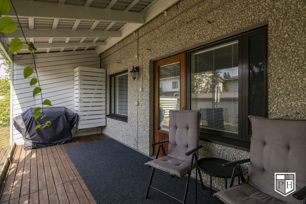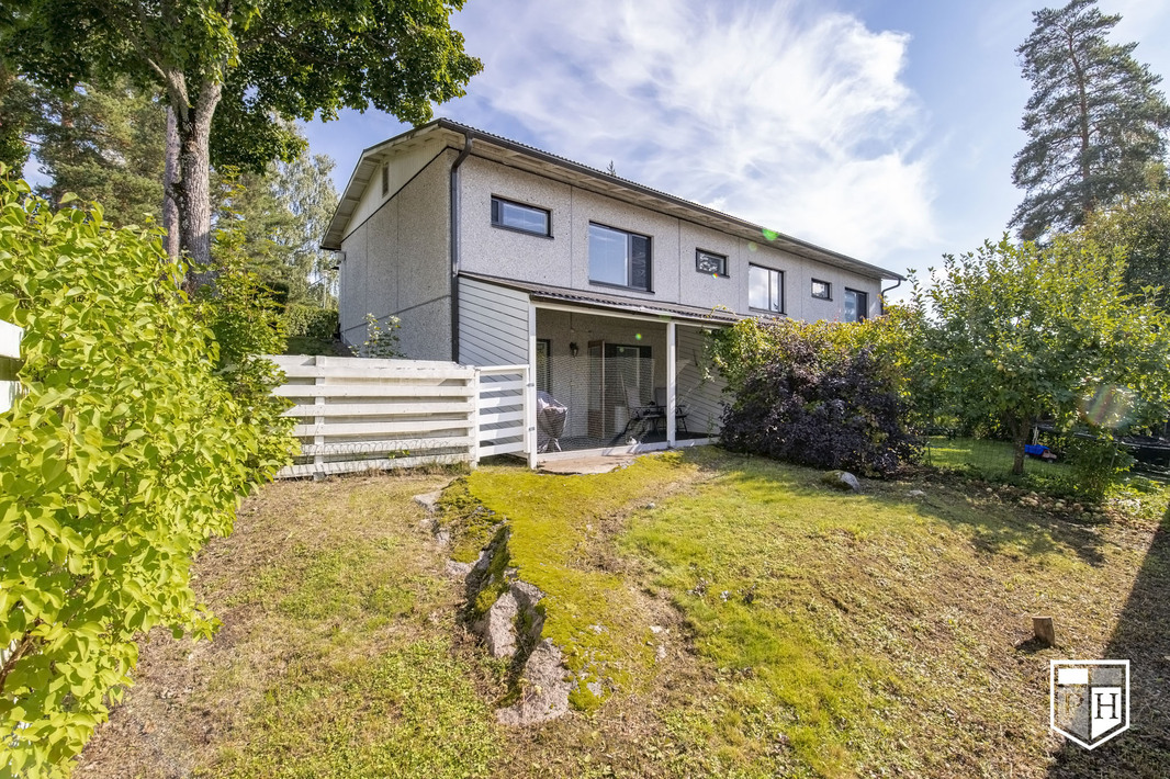 Näppärä päätyhuoneisto huippurauhallisella paikalla Niipperissä. Sisääntulokerroksessa keittiö, olohuone sekä erillinen wc. Alakerrassa tyylikkäästi vuonna 2022 remontoitu pesuhuone, sauna sekä kaksi makuuhuonetta, joista toisesta käynti katetulle terassille ja isolle länsipihalle. Ulkovaraston lisäksi käytössä on lämmin kellarikomero.