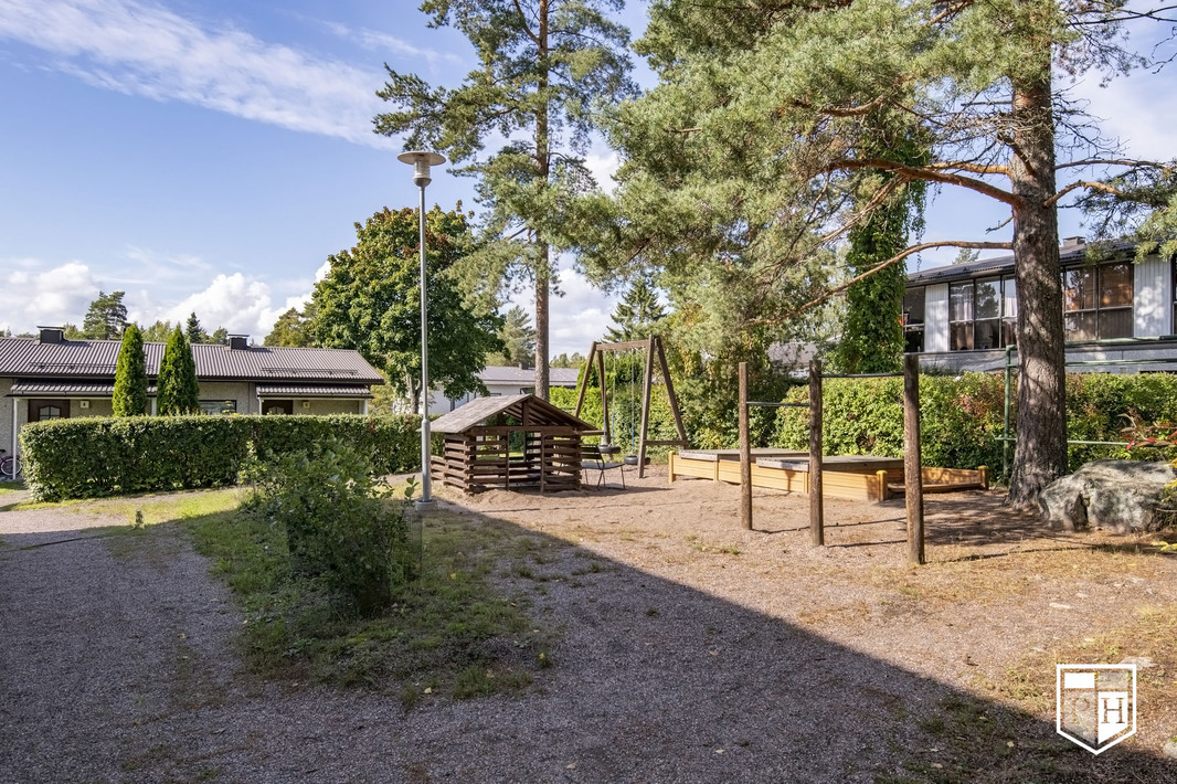 | Tehdyt remontit | 2024: A4 kph:n korjaus, 2023: F22 kph:n vesivahinkokorjaus, F25 lattioiden oikaisu, 2022: F23 kph:n lattialämmitys, D-talon päädyn lisäeristys, A5 kph:n vesivahinkokorjaus, 2020: B- ja D-talojen keittiöiden poistoilman erotus muusta kanavajärjestelmästä, vesiposti B-talon päätyyn, E-talon päätypaneelien vaihto ja maalaus, F-talon päätypaneelien maalaus, 2019: F-talon päätypaneelien vaihto, lumiesteet yksikerroksisten talojen katoille ja A-talon etupuolen katoille, F24 vaatehuoneen vesivahinkokorjaus, D15 kph:n vesivahinkokorjaus, 2018: valopylväiden asennus leikkipaikalle, D14 kph:n vesivahinkokorjaus, kattojen vaakavesikourujen uusiminen, kattorakenteiden maalaus ja korjaukset, 2017: huoltorakennuksen vesikaton saneeraus, C13 kph:n vesivahinkokorjaus, 2016: 17 kpl kph:n lattialämmitysputkien painekoe, 2015: D17 painekoe lattialämmitysputkessa, valaisimien vaihto kellarien verkkokomerotilassa, D18 kph:n vesivahinkokorjaus, rakennusten välikattojen putkien eristystyö 13 kpl asunnon osalta, 2014: rakennusten välikattojen putkien eristystyö 13 kpl asunnon osalta, piha-alueiden kunnostus, puiden kaato, grillipaikan kunnostus, 2013: kattorakenteiden kunnostus, kaukolämpöön liittyminen ja lämmönvaihtimen asennus, kaikkien ikkunoiden uusiminen, 2012: leikkipaikan kunnostus, jätekatoksen valaistus, 2021: piha-alueen valaistuksen parannus, 2010: postilaatikot uusittu, 2009: D-talon pihapuolen kourun ja syöksyn uusinta, ilmastointipiippujen pellitys 10 kpl, 2008: elementti-, ikkuna- ja ovisaumojen uusiminen, uusittu 2-kerroksen terassiovet 14 kpl, aitaelementtien uusiminen huoneistojen välillä 27 kpl, 2004-2005: uusien vaakavesikourujen ja syöksytorvien asennus, 2003-2004: sokkelien kunnostus, 2002: kylmävesisulkujen uusiminen, 2001: vajojen kunnostukset, 2000: ikkunapuitteiden ja julkisivujen puuosien maalaus, 1999: ulko-ovien uusiminen, 1990: tasakatot muutettu harjakatoiksi. |