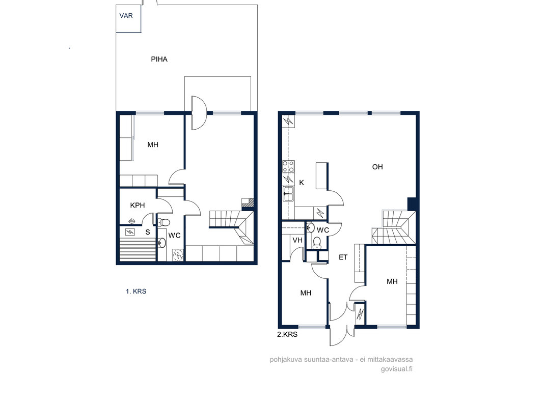Huoneistoselitelmä 4-5h, k, s, takkahuone, vh, kaksi wc:tä + varasto, autokatospaikka ja pistokepaikka
