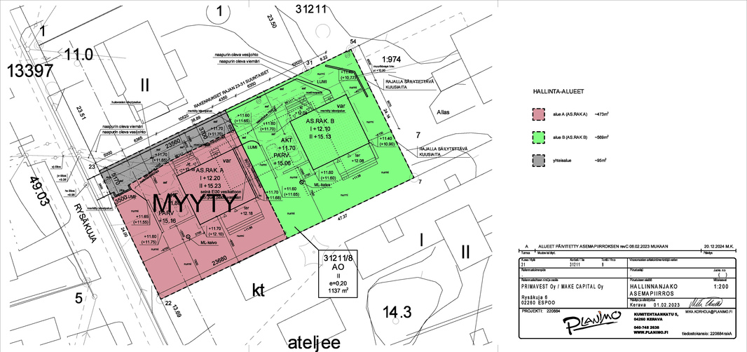 | Lisätietoja rakennusoikeudesta | AO II, e=020 |