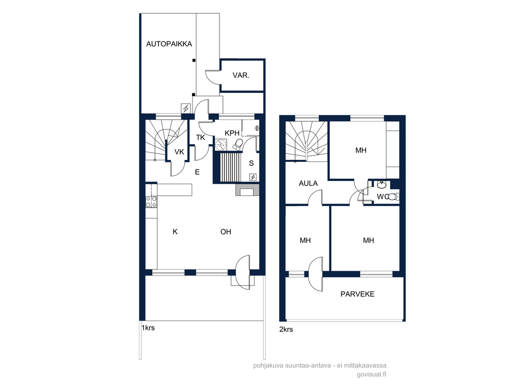 Huoneiston sisäänkäynnin edessä on sähköpistokkeellinen autopaikka ja ulkovarasto.