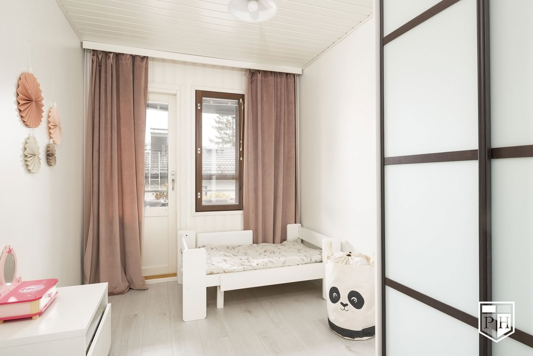 Makuuhuoneen kuvaus Kolme erikokoista makuuhuonetta, yhdestä käynti parvekkeelle. Lattia vinyylilankkua.