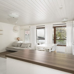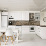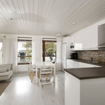 Keittiön varustelu Avokeittiö. Jääkaappipakastin, induktioliesitaso, liesikupu huippuimurilla, erillisuuni, integroitu mikroaaltouuni, astianpesukone. LED-valonauha. Niemeke. Lattia vinyylilankkua.