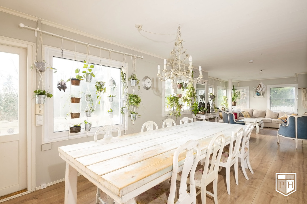 Idyllisessä maalaismaisemassa, mäen päällä, isollekin perheelle sopiva jylhä omakotitalo.