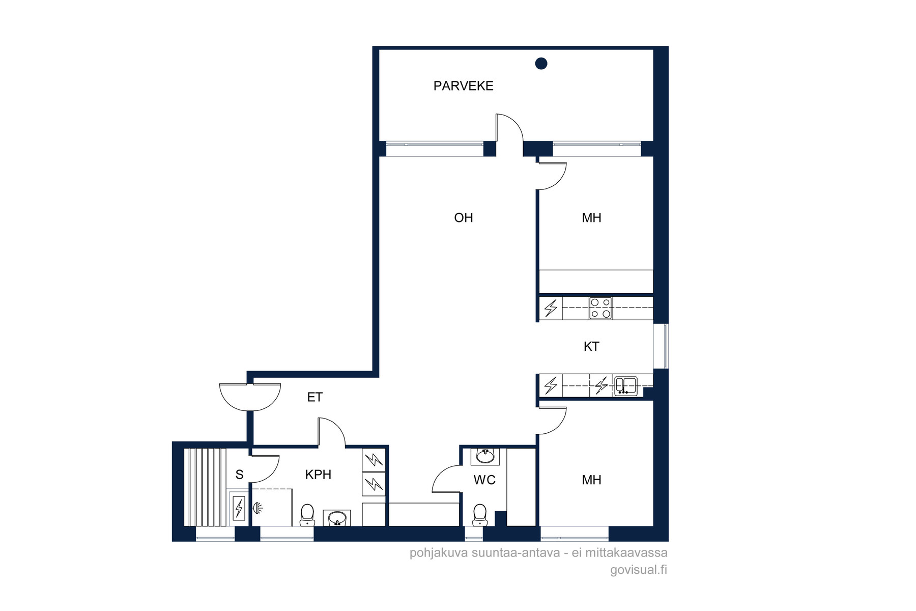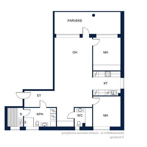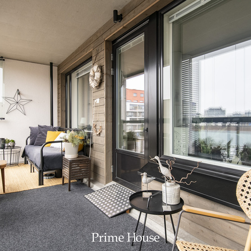 Topi-Keittiöiden tyylikäs keittiö avautuu ruokailutilaan ja olohuoneeseen. Olohuoneesta on käynti isolle lasitetulle ilta-aurinkoiselle parvekkeelle. Olohuoneen viilentävä ilmalämpöpumppu antaa helpotusta kesän hellepäiviin.