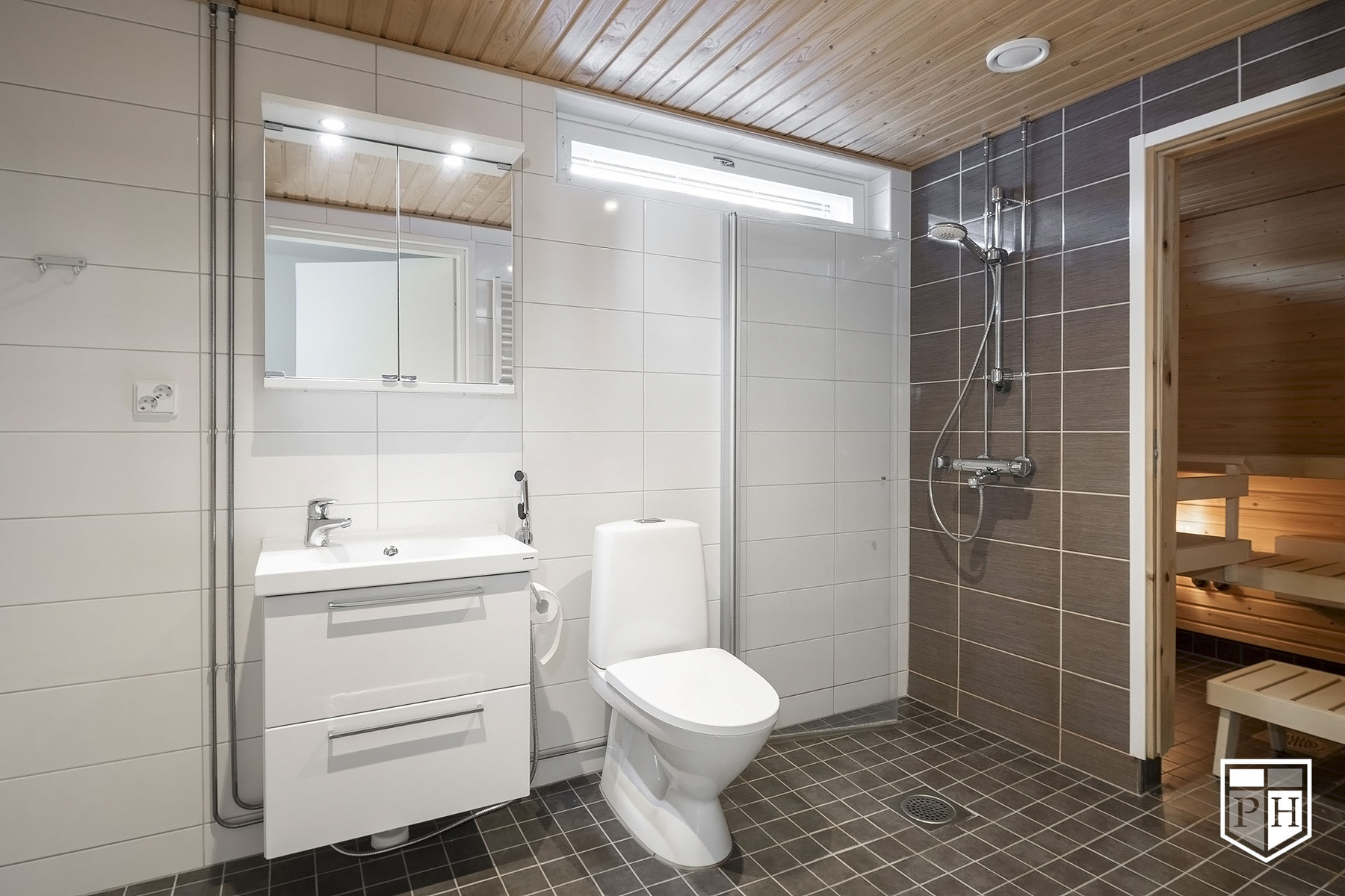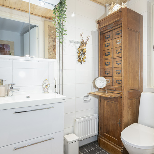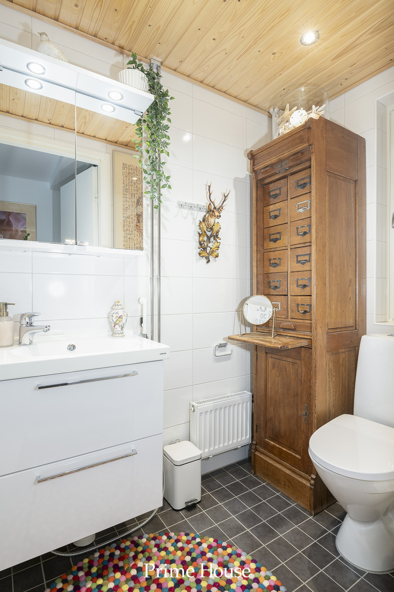 Kaksi tilavaa makuuhuonetta. Moderni kylpyhuone/wc ja sauna, lisäksi erillinen wc.