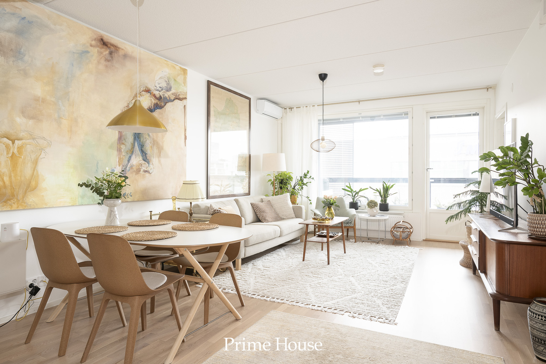 Olohuoneessa on ilmalämpöpumppu viilennykseen.