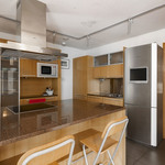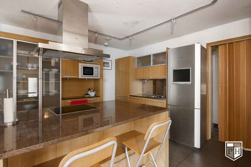 Keittiön varustelu Integroitu jääkaappipakastin, mikroaaltouuni ja astianpesukone. Keraaminen liesitaso (2024), erillisuuni (2024), liesituuletin ja saareke. Pöytätasot kiveä, lattia laattaa.