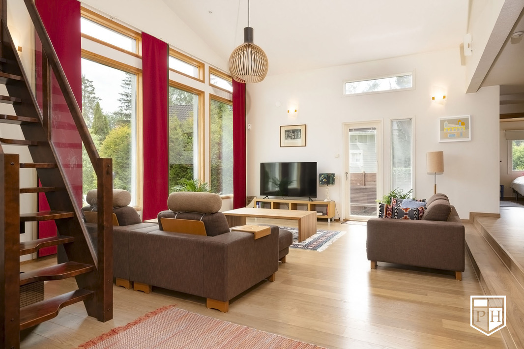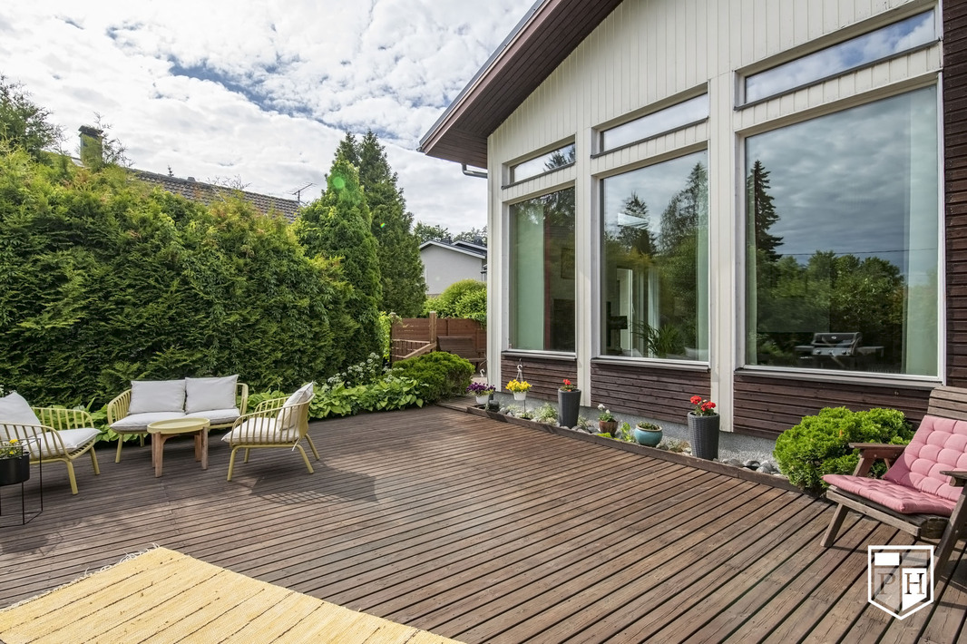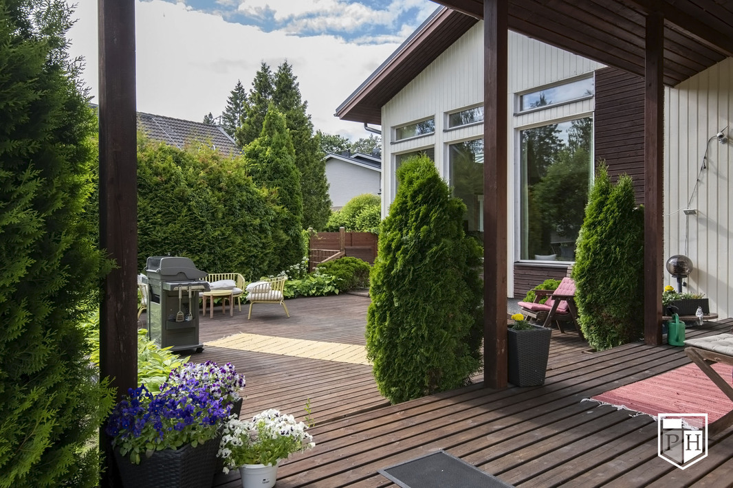 Harmoniaa, paljon tilaa ja vehreää viihtyisyyttä! Avarat oleskelutilat, terassit ja puutarha antavat inspiroivat puitteet uuden perheen elämään. Lähistöltä löytyvät kattavat koko perheen palvelut, lähellä ovat niin isot ja pienemmät kauppakeskukset ja monipuoliset harrasteet kuin pienten asukkaiden päiväkodit ja koulutkin.