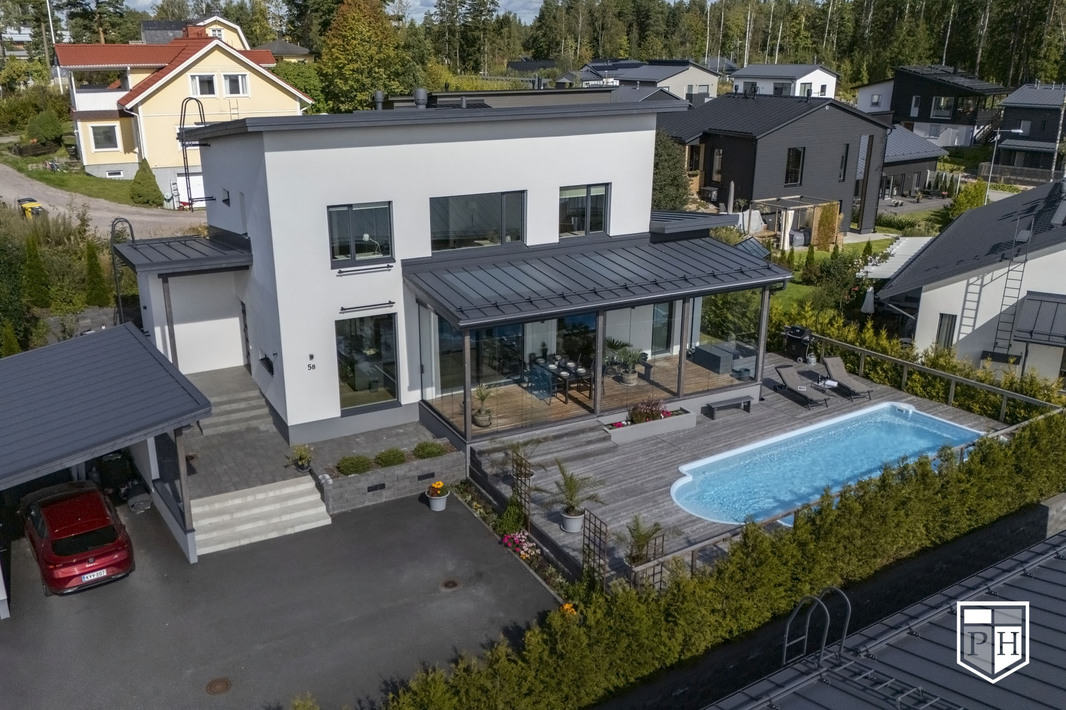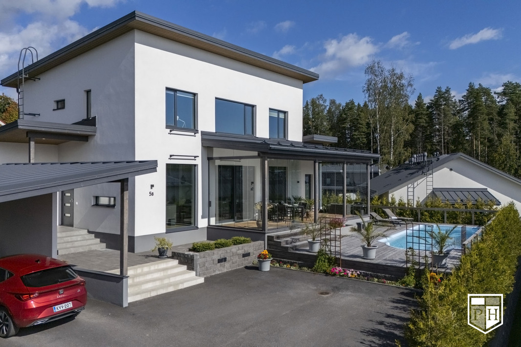 Tervetuloa unelmiesi kotiin – tähän upeaan, kahden kerroksen kivitaloon, jossa yhdistyvät skandinaavinen eleganssi, laadukkaat materiaalit ja arjen luksus. Ulkouima-altaan kruunaama koti sijaitsee rauhallisella ja suositulla pientaloalueella luonnon läheisyydessä.