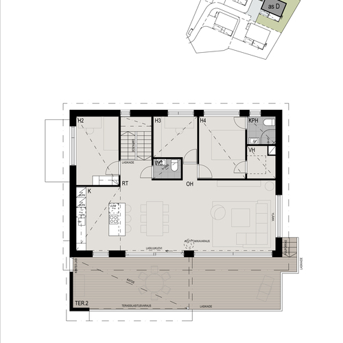 Kaikki suunnitelmat, luvat ja tontti ovat valmiina, ja luotettava kotimainen Rakennusliike PR-Yhtymä Oy vastaa hankkeen valmistumisesta aikataulun mukaisesti. Itse talon, terassin ja terassiparvekkeen lisäksi oma piha tuo asumiseen iloa, valmis nurmipiha odottaa lasten leikkejä ja viherpeukalon ideoita. Nopeana ostopäättäjänä ehdit myös vaikuttaa pintamateriaalien ja varusteiden valintaan sekä tilata lisätyönä mm. parvekelasituksen.