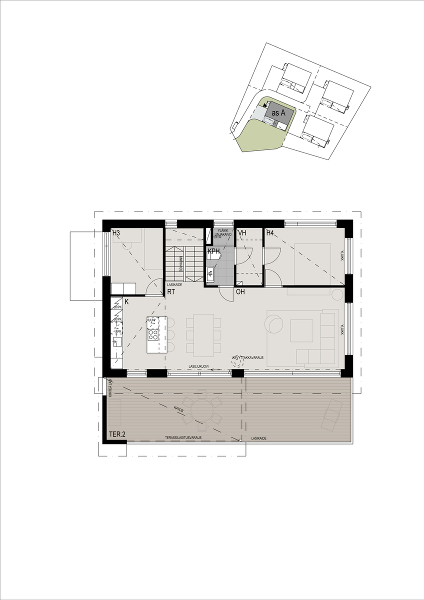 Kaikki suunnitelmat, luvat ja tontti ovat valmiina, ja luotettava kotimainen Rakennusliike PR-Yhtymä Oy vastaa hankkeen valmistumisesta aikataulun mukaisesti. Itse talon, terassin ja terassiparvekkeen lisäksi oma piha tuo asumiseen iloa, valmis nurmipiha odottaa lasten leikkejä ja viherpeukalon ideoita. Nopeana ostopäättäjänä ehdit myös vaikuttaa pintamateriaalien ja varusteiden valintaan sekä tilata lisätyönä mm. parvekelasituksen.